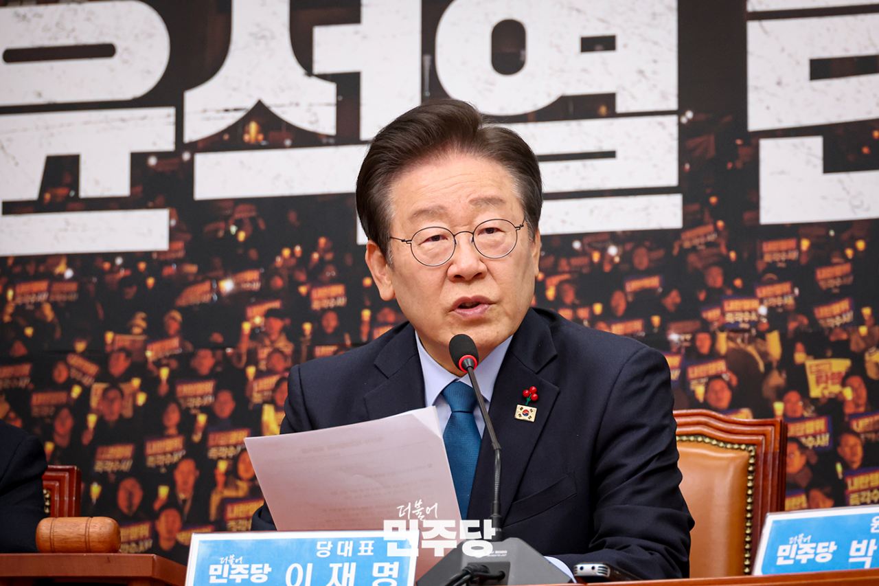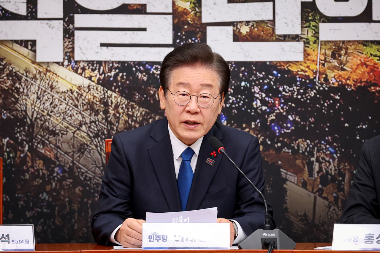 이재명 당대표가 2024.12.09.(월) 국회 본청 당대표회의실에서 열린 최고위원회의에 참석하여 발언하고 있다.