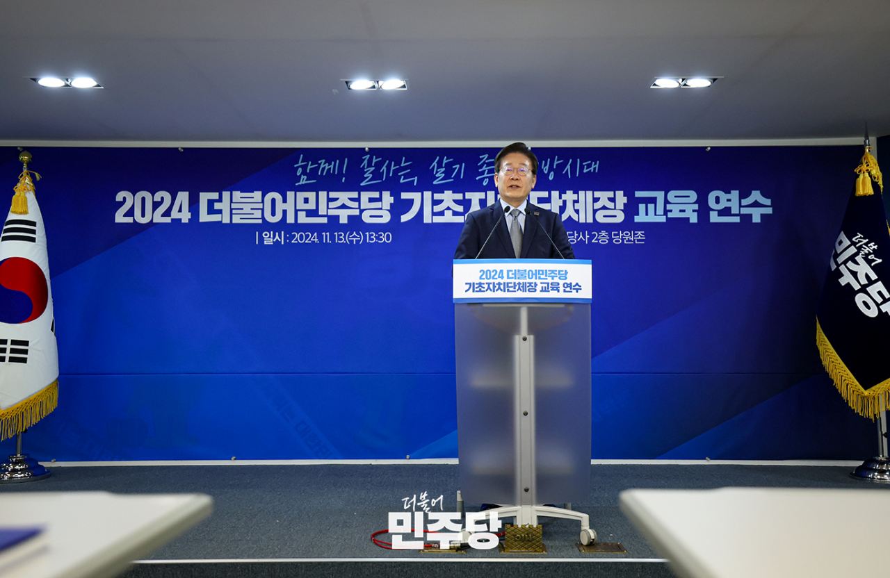 이재명 당대표가 2024.11.13.(수) 더불어민주당사 당원존에서 열린 2024 더불어민주당 기초자치단체장 교육 연수에 참석하여 발언하고 있다.