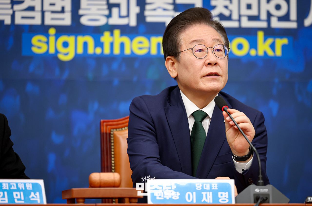 이재명 당대표가 2024.11.18.(월) 국회 본청 당대표회의실에서 열린 최고위원회의에 참석하여 발언하고 있다.