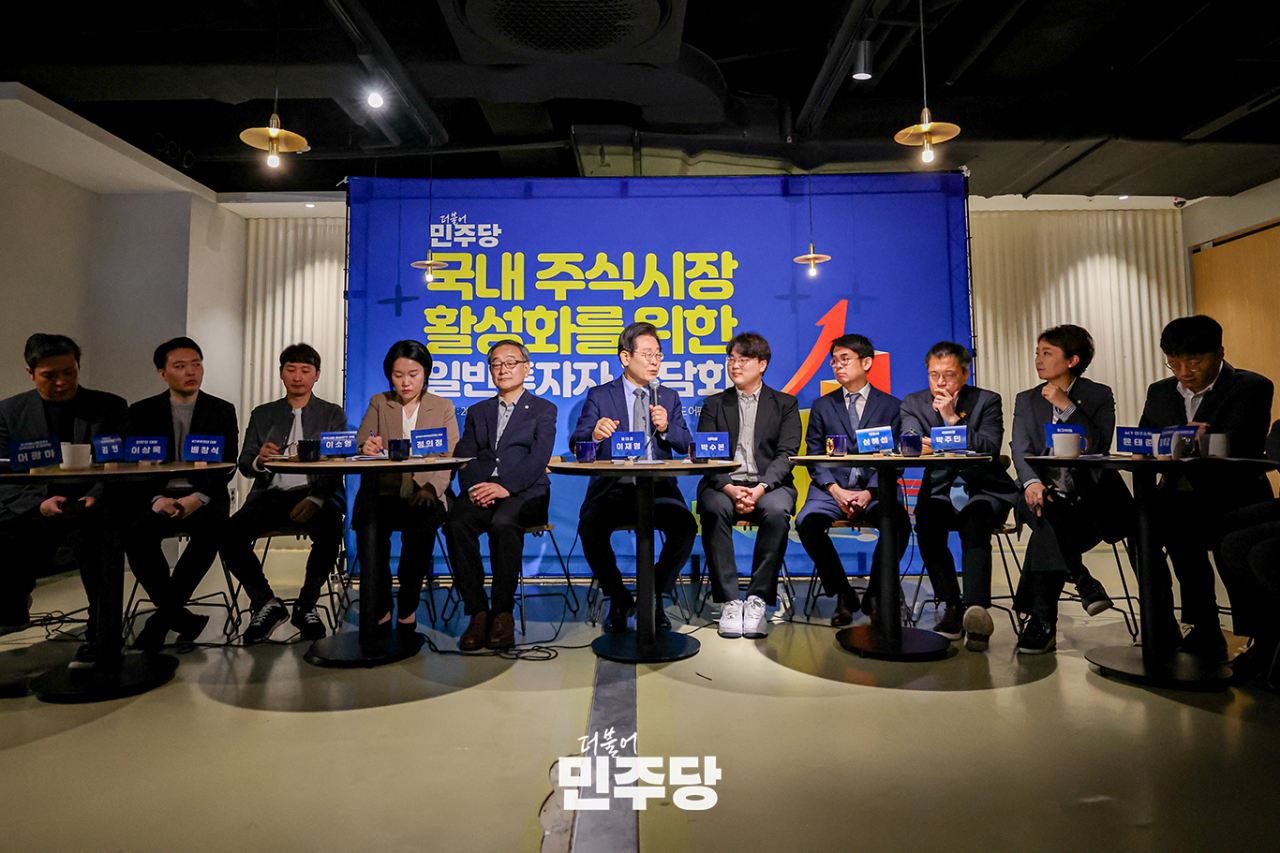 이재명 당대표가 2024.11.20.(수) 여의도 어펜딕스에서 열린 일반투자자 간담회에 참석하여 발언하고 있다.