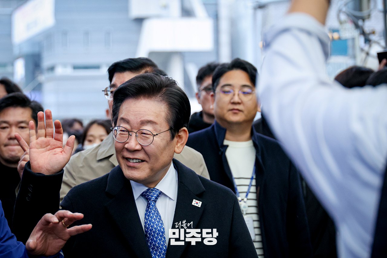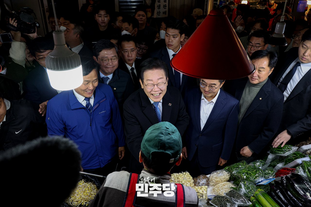 이재명 당대표가 2024.11.21.(목) 수원시 팔달구의 못골시장을 방문하여 상인과 대화하고 있다.