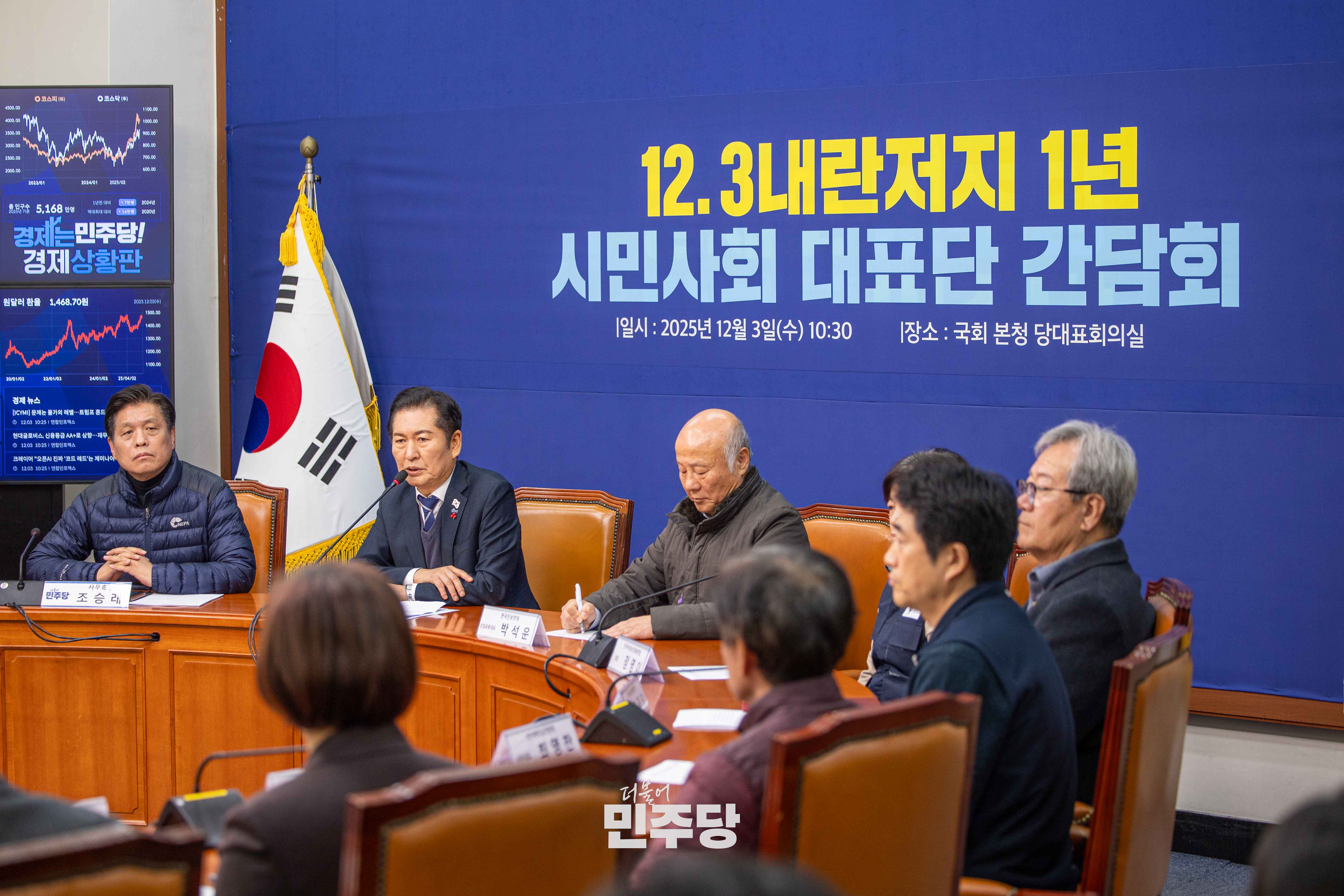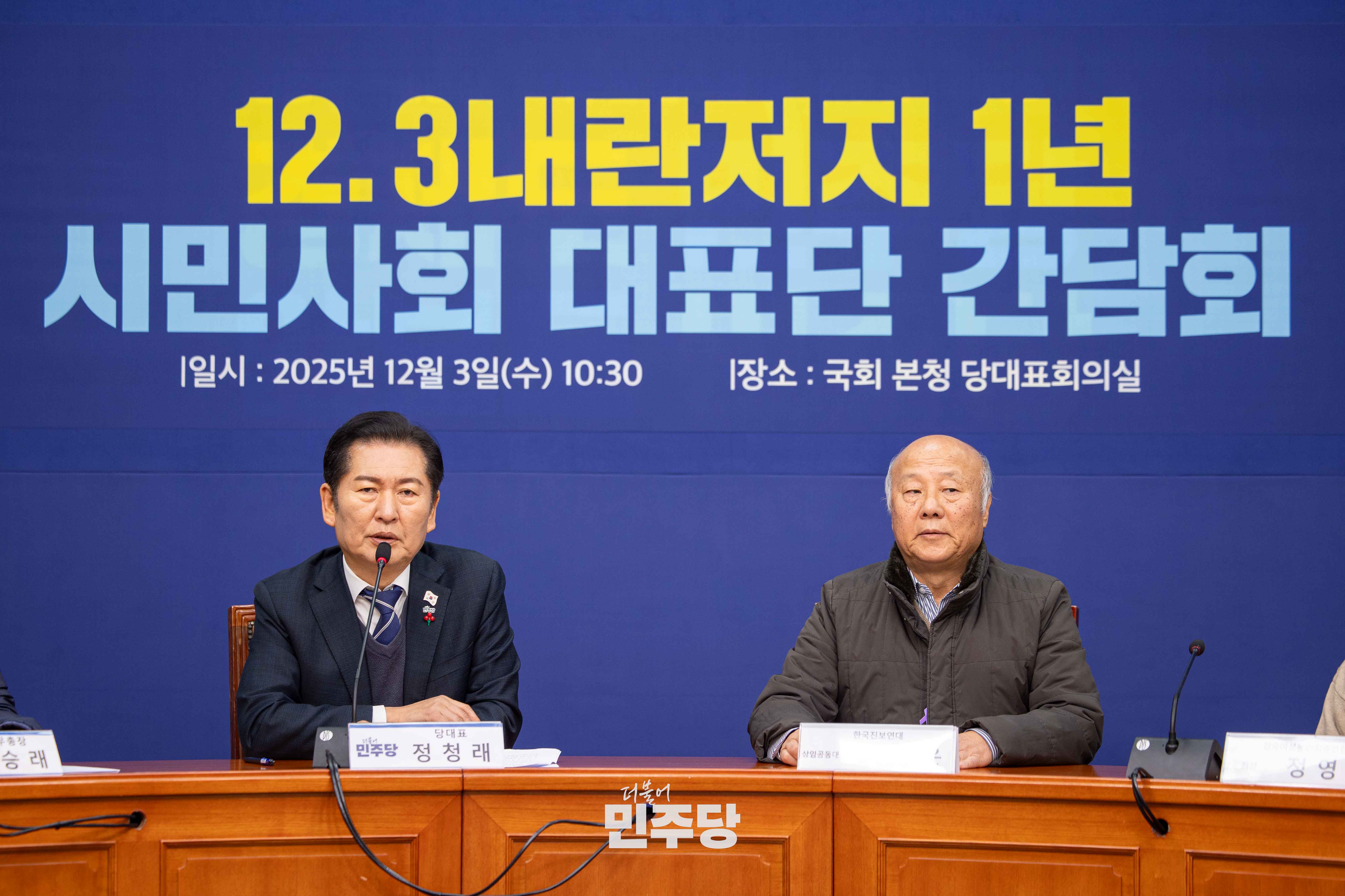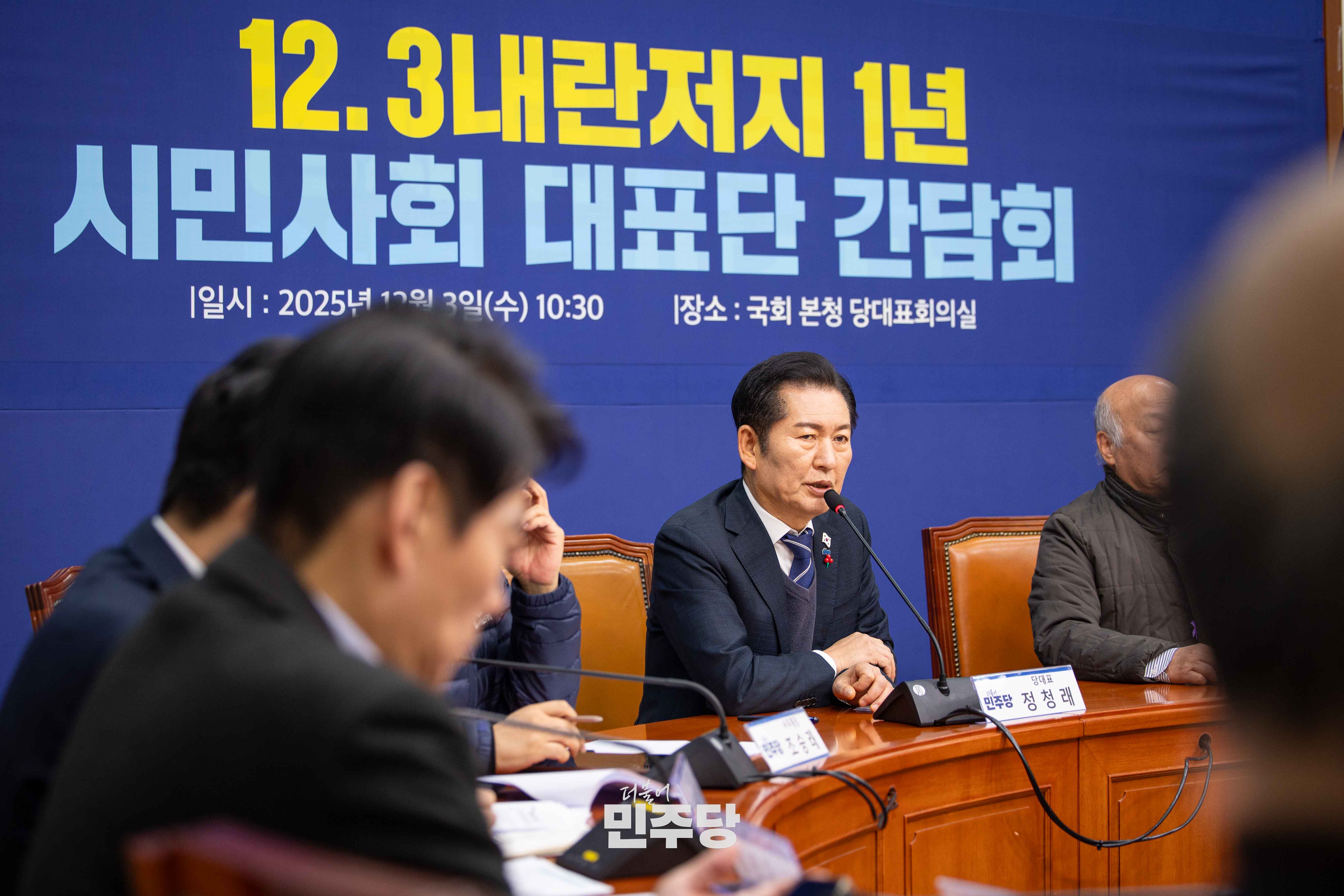 정청래 당대표가 2025.12.03.(수) 국회 의원회관 대회의실에서 열린 12.3 비상계엄 1년 특별좌담회 행동하는 K-민주주의에 참석하여 좌담회를 하고 있다.
