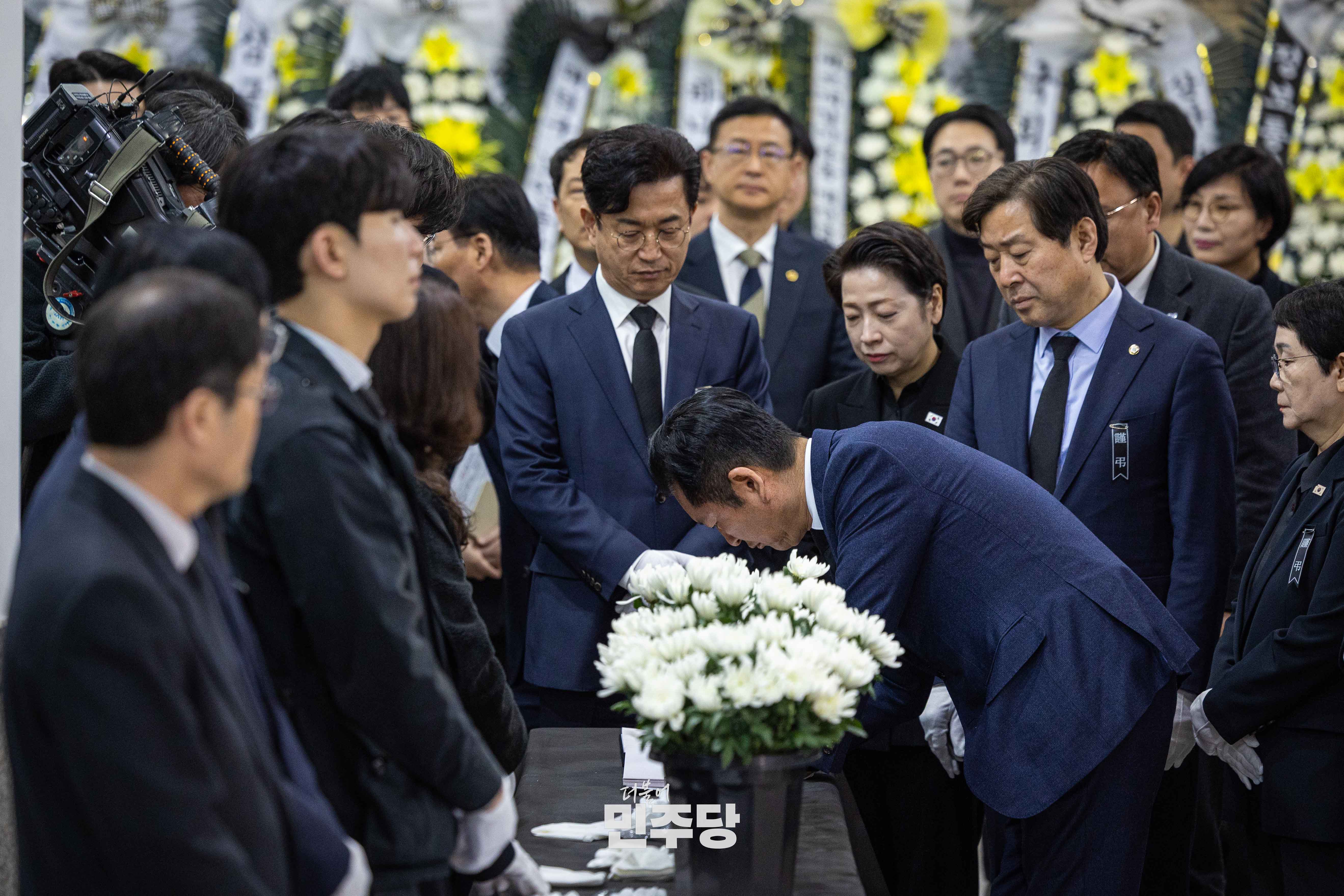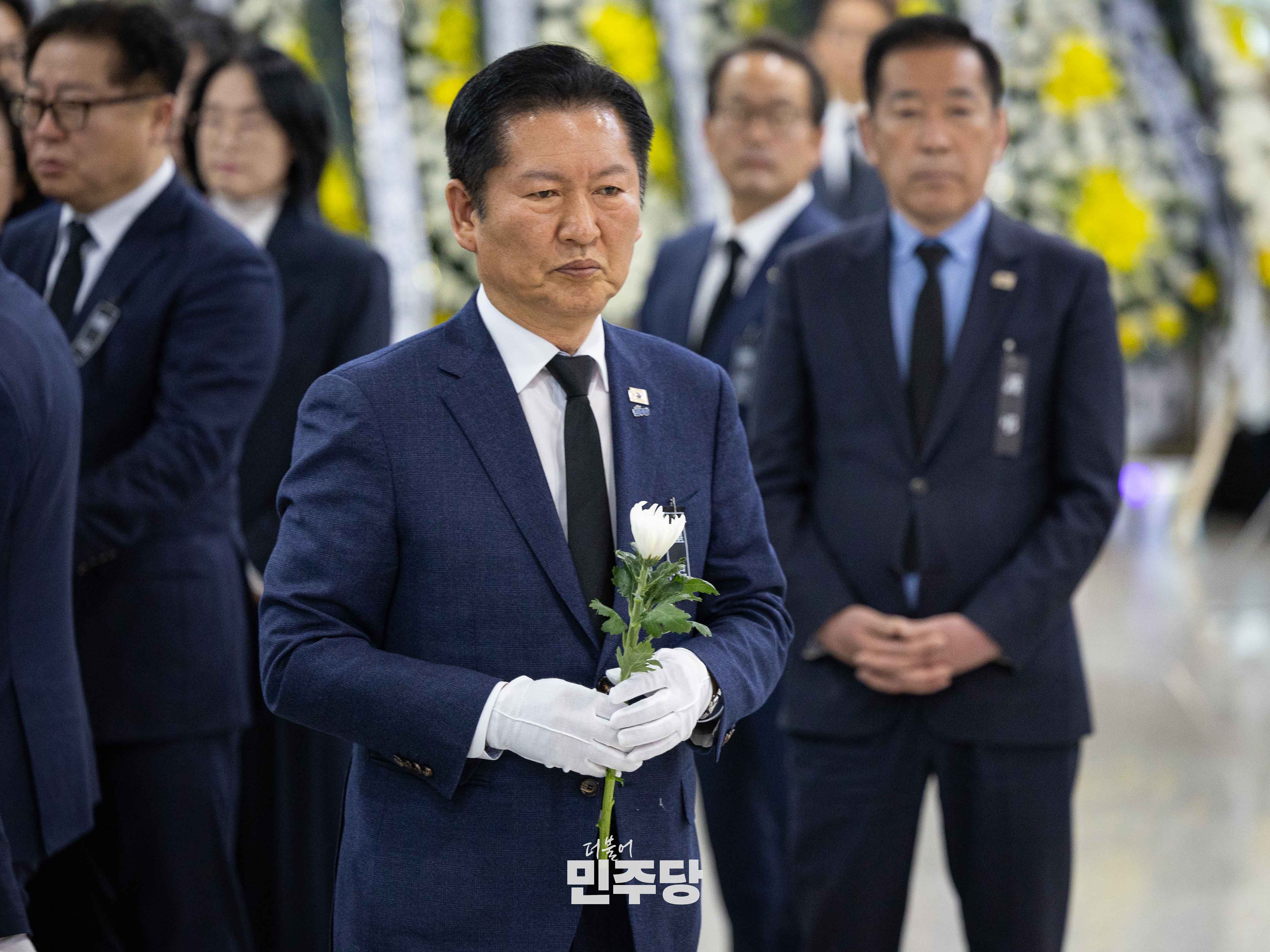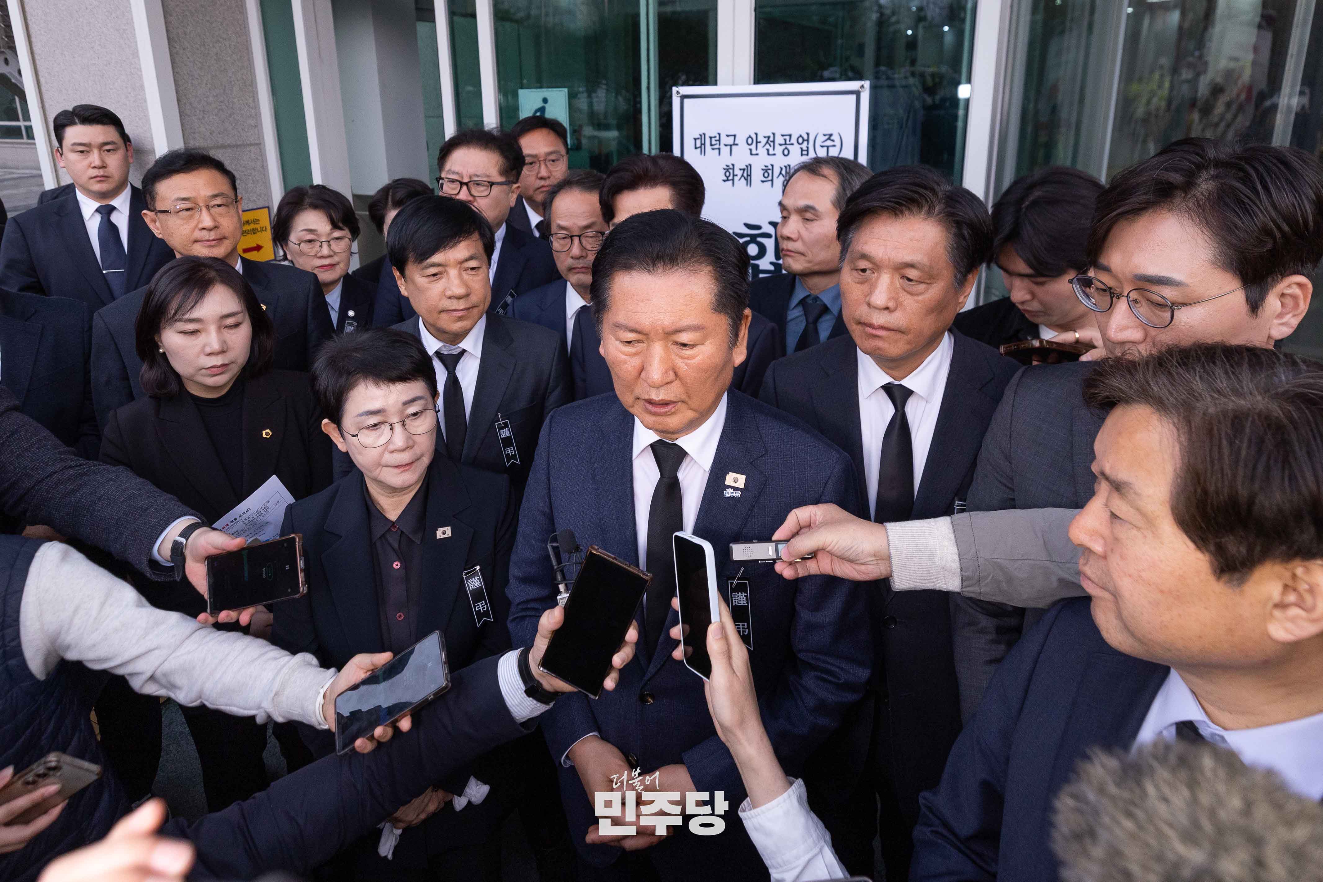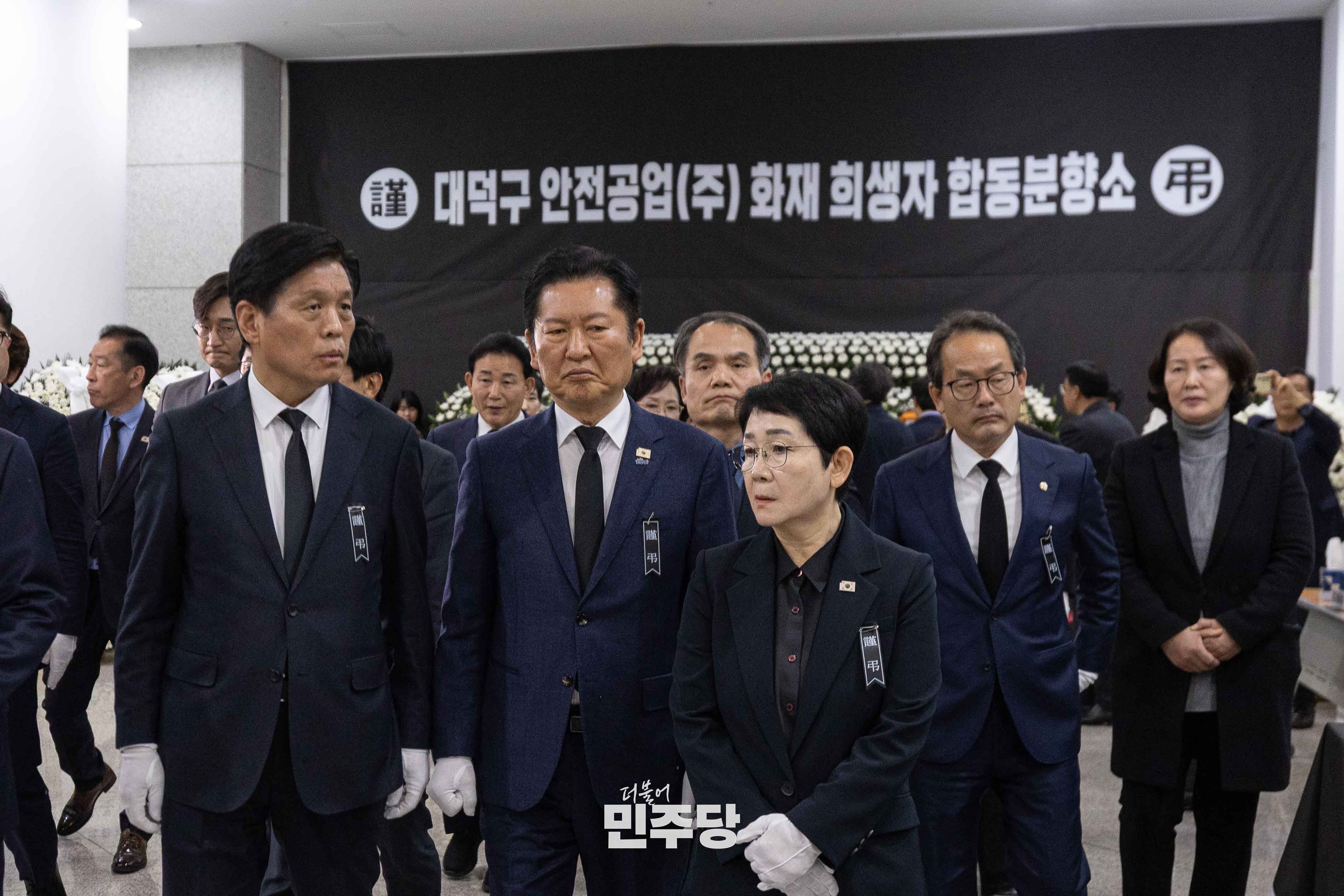 정청래 당대표가 2026.03.23.(월) 대전시청에 마련된 대전 대덕구 공장 화재 희생자 합동분향소에서 조문을 드리고 있다.