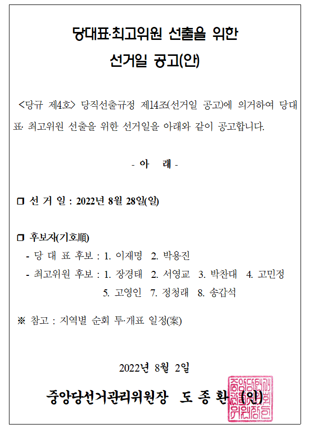 시도당위원장 선출을 위한 온라인투표 사이트 및 투표율 안내
