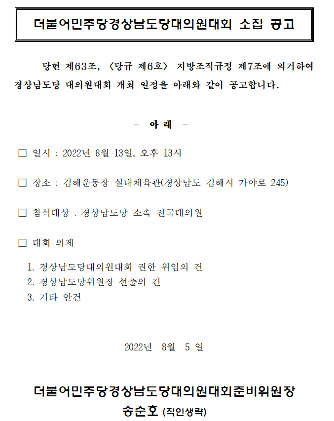 더불어민주당 대전광역시당 정기대의원대회 소집 공고