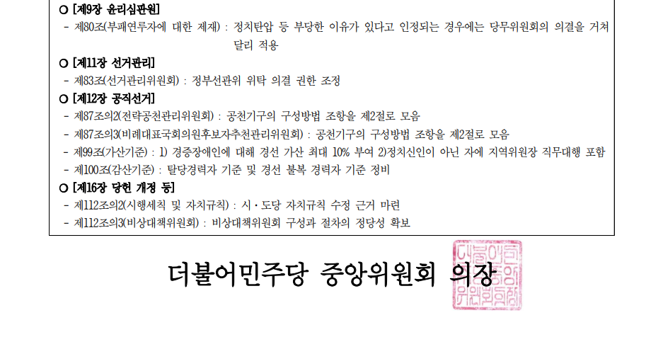 당헌 개정안 공고