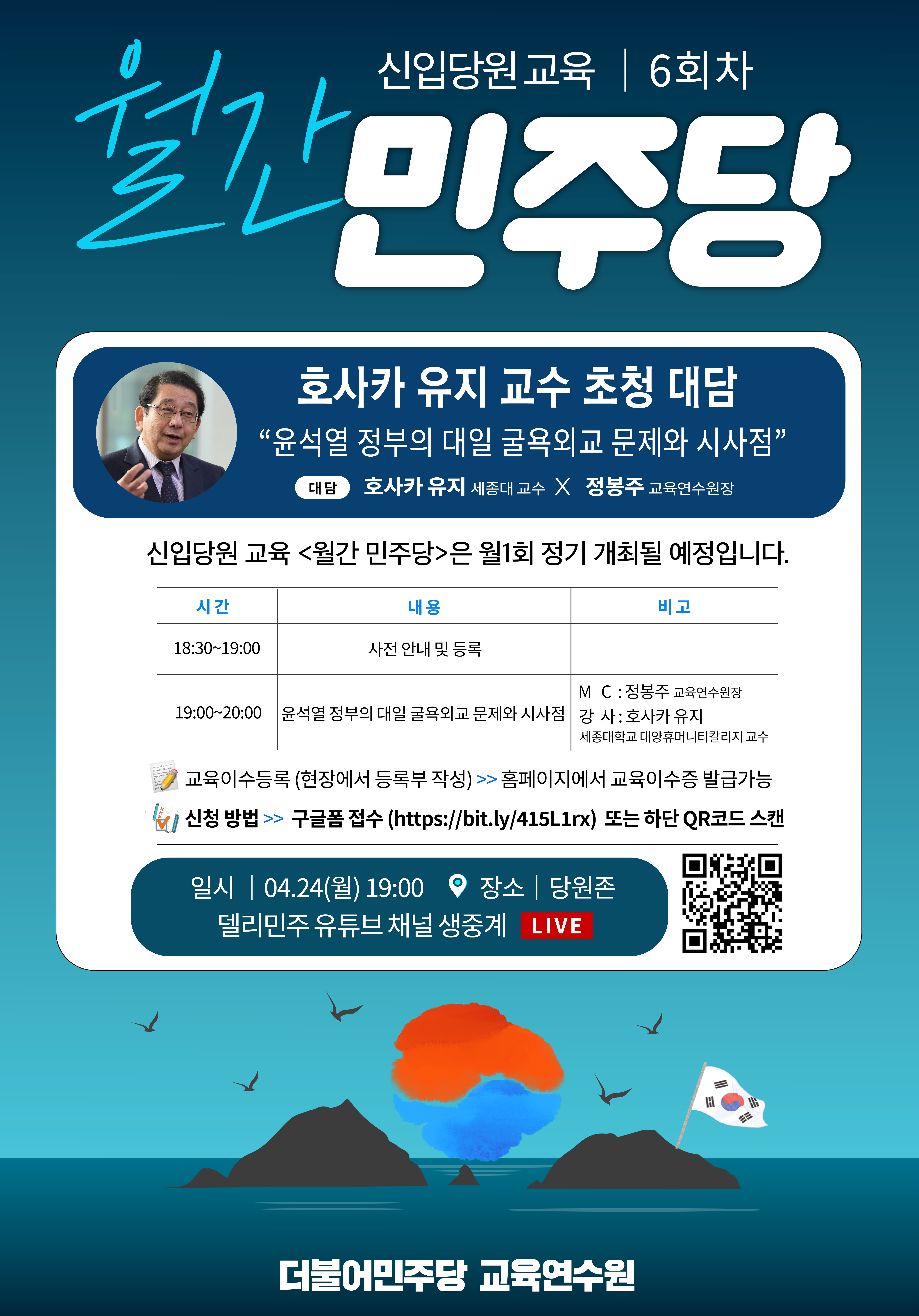 신입당원 교육 월간민주당 6회 :호사카 유지 교수 초청 대담 "윤석열 정부의 대일 굴욕외교 문제와 시사점"
