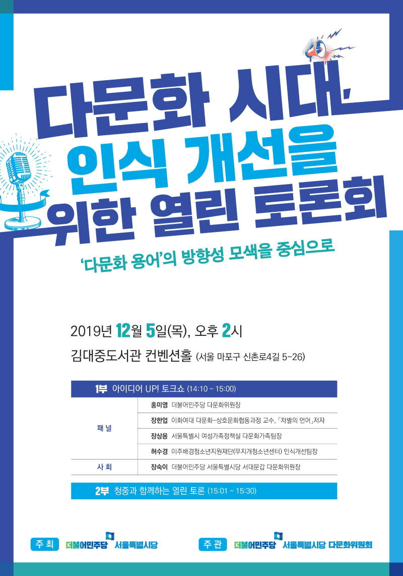 참석대상 : 지역위원회 다문화위원장 및 다문화위원, 해당 주제에 관심 있는 당원 등