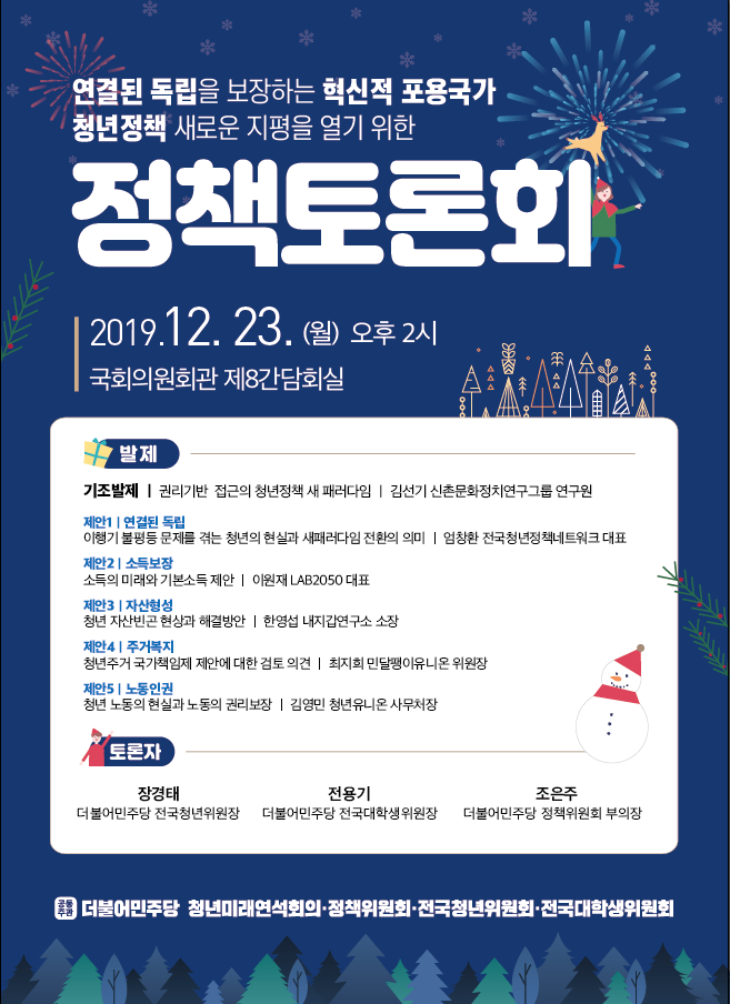 - 주관 : 더불어민주당 청년미래연석회의, 정책위원회, 전국청년위원회, 전국대학생위원회