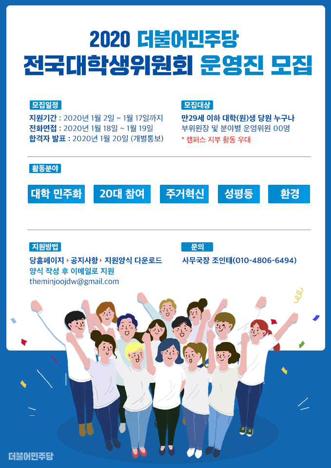 2020 더불어민주당 전국대학생위원회 운영진 모집