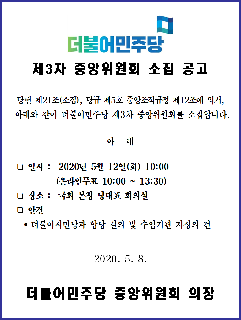 더불어민주당 제3차 중앙위원회 소집 공고