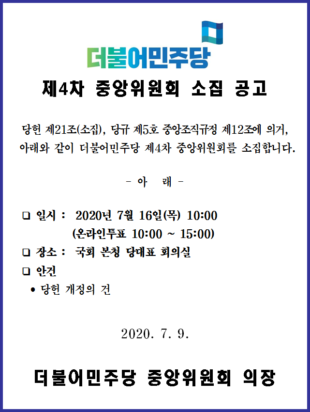 제 4차 중앙위원회 소집 공고