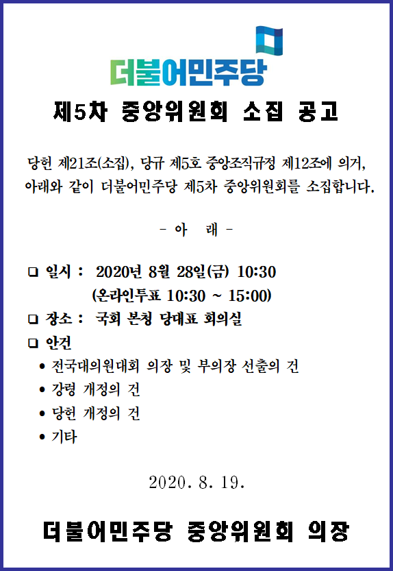 제5차 중앙위원회 소집 공고