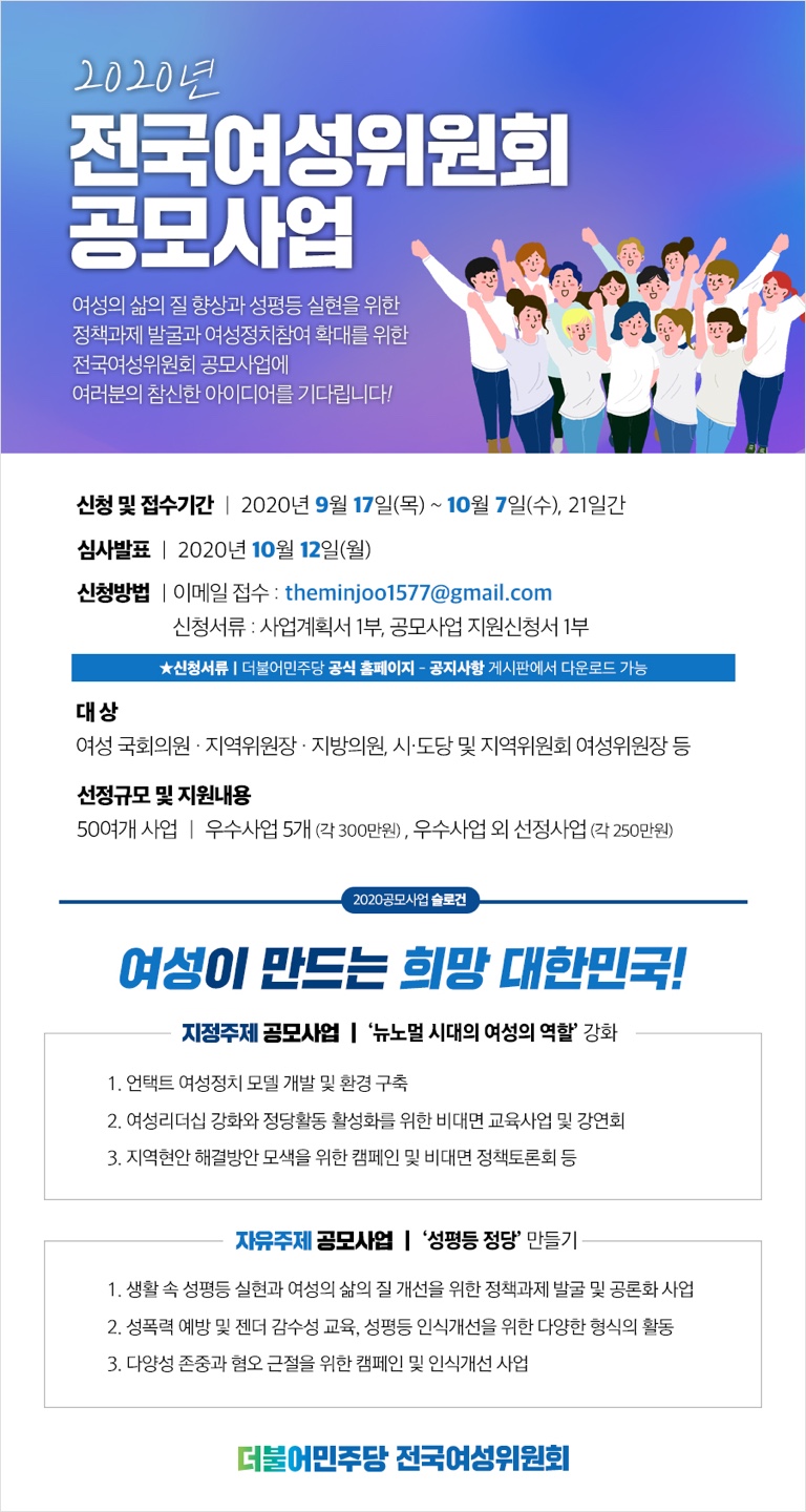 2020 전국여성위원회 공모사업 신청을 받습니다