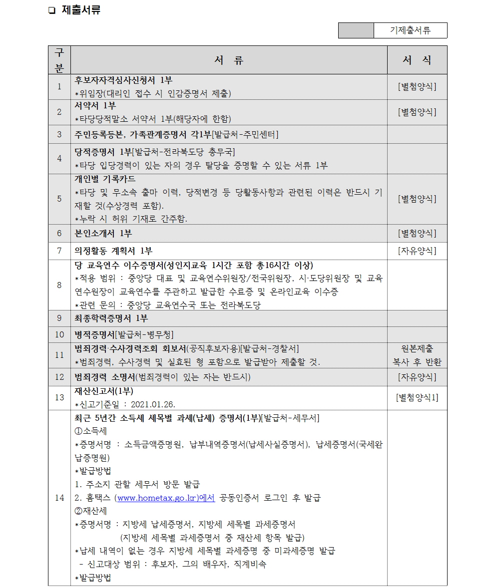 2021.4.7 재·보궐선거 전라북도당 공직선거후보자 공모 공고