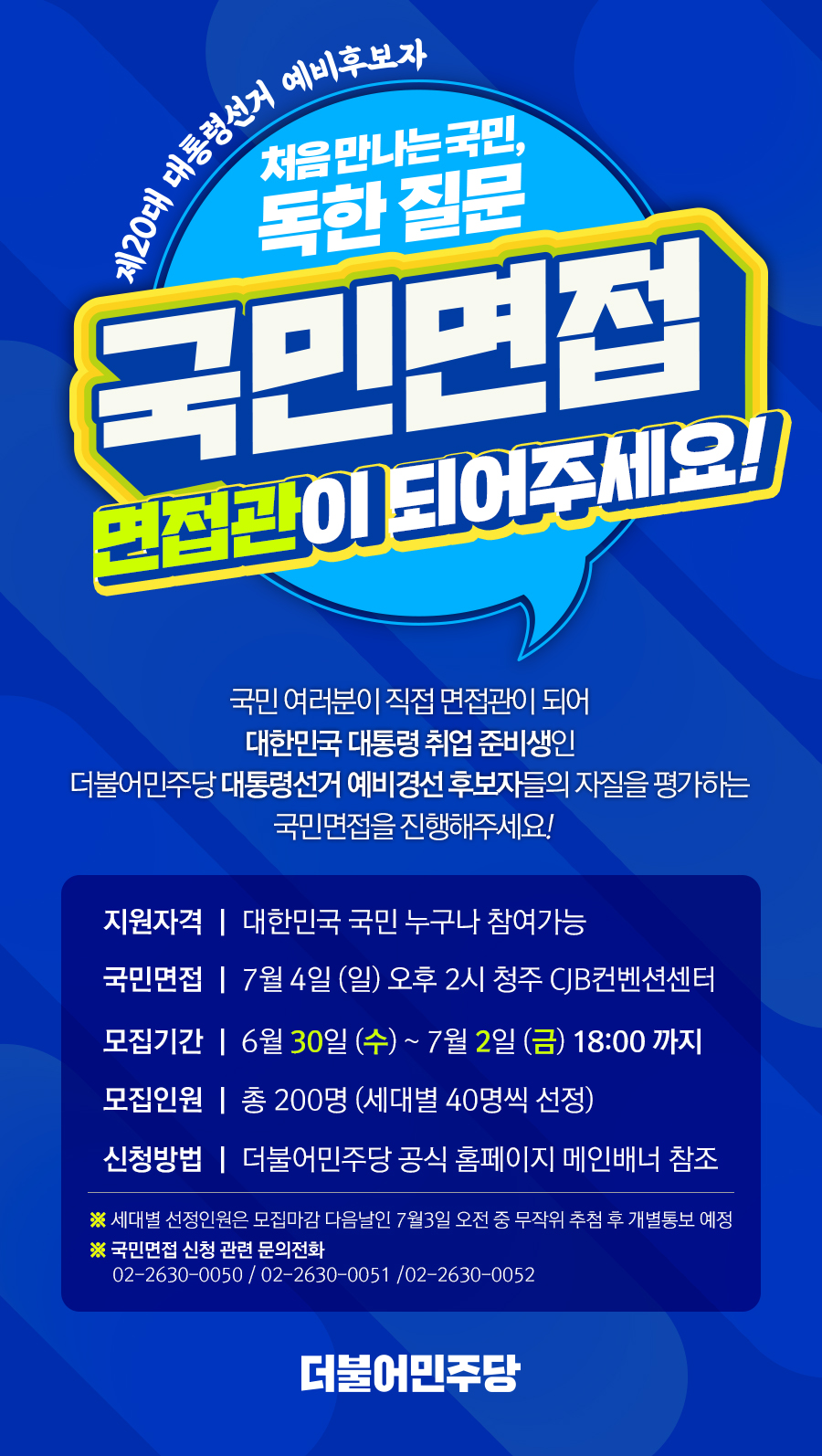 국민면접관 모집 공고 : 제20대 대통령선거 예비후보자의 국민면접관이 되어주세요!