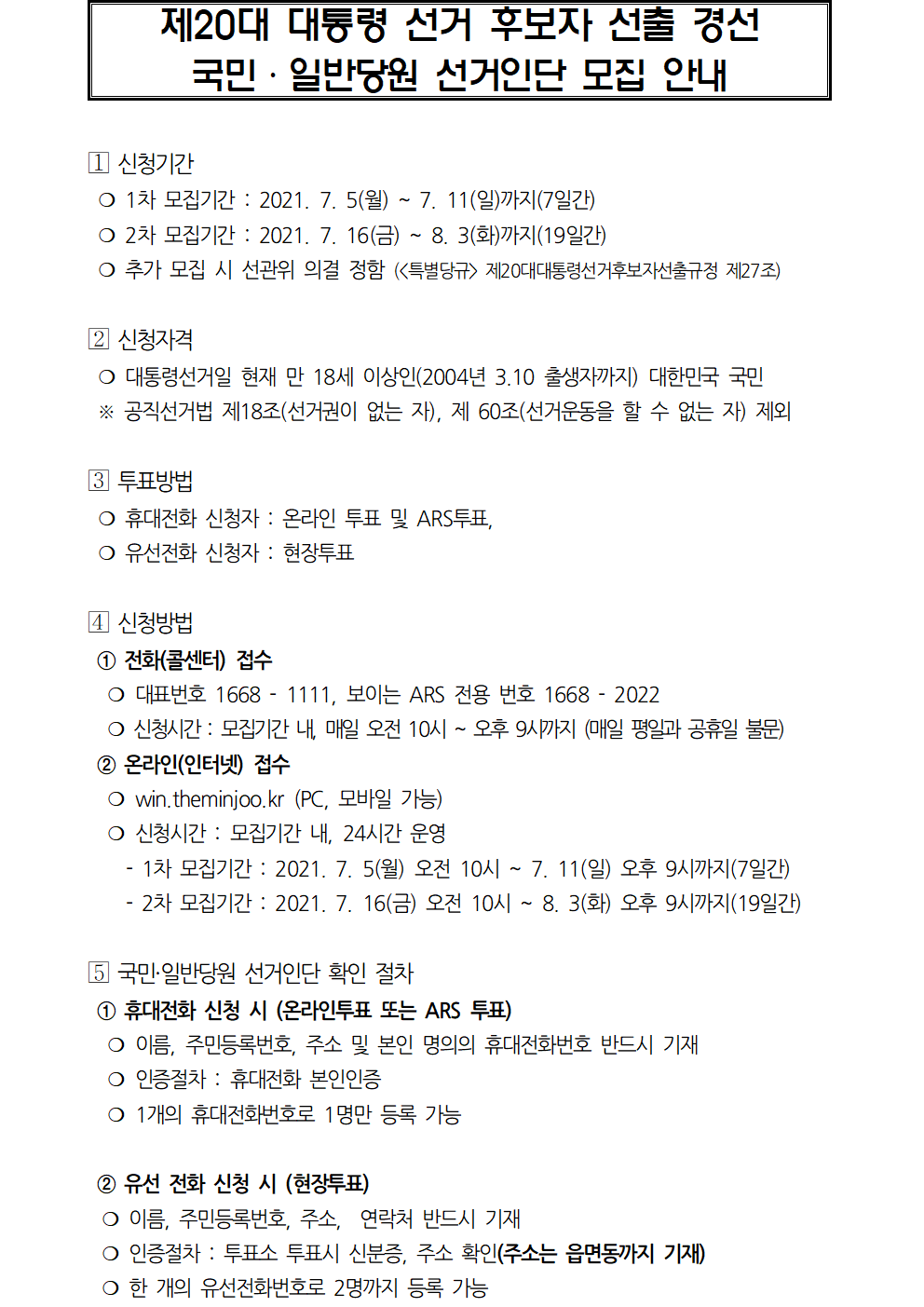 2차 국민·일반당원 선거인단 / 1차 재외국민 선거인단 열람 및 이의신청 안내