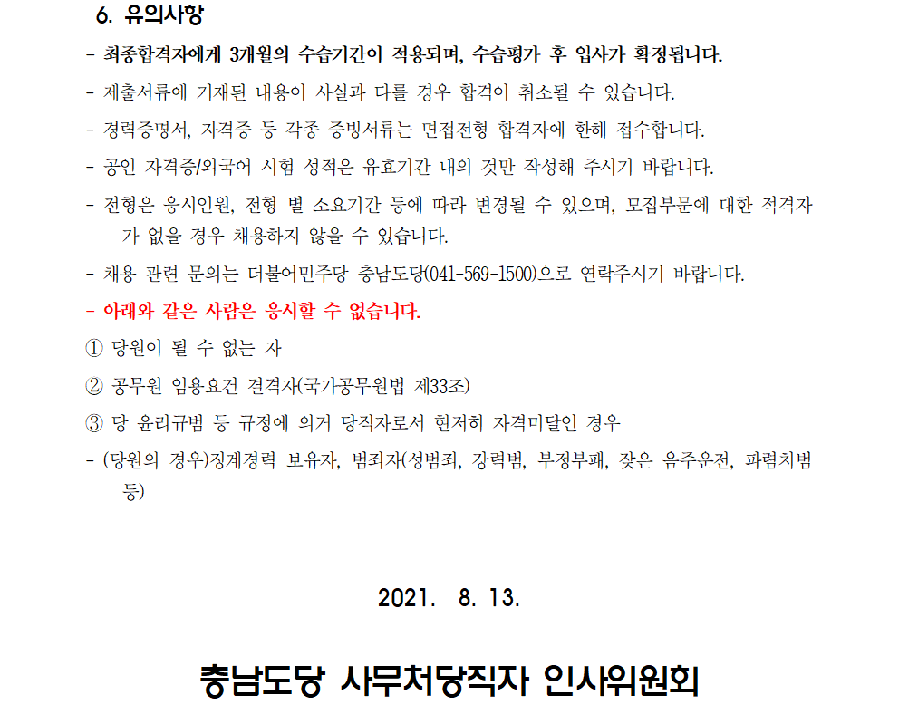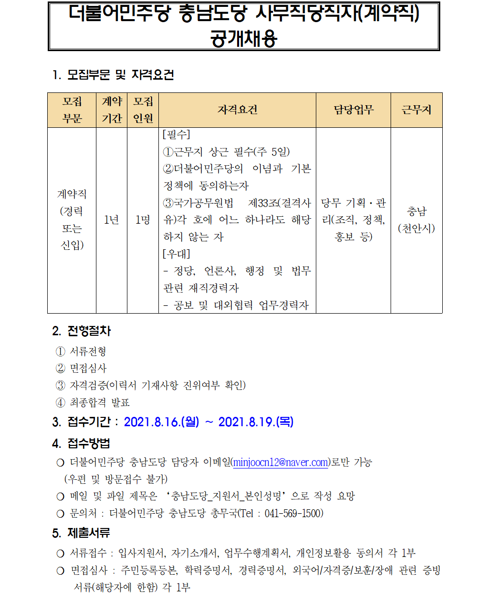 [더불어민주당 충청남도당] 사무직당직자(계약직) 공개채용