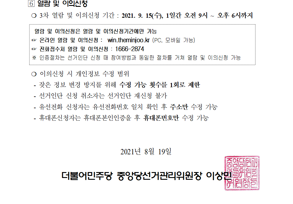 제20대 대통령 선거 후보자 선출 경선 국민·일반당원 3차 선거인단 모집 안내[21.8.31 수정]