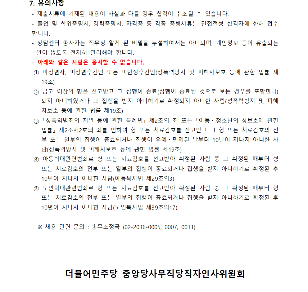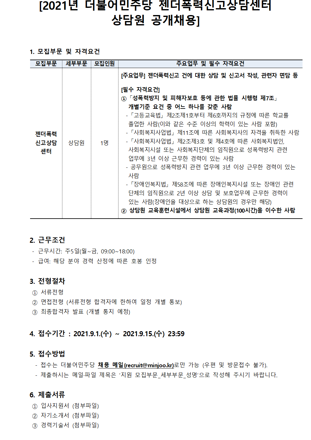 [2021년 더불어민주당 젠더폭력신고상담센터 상담원 공개채용]