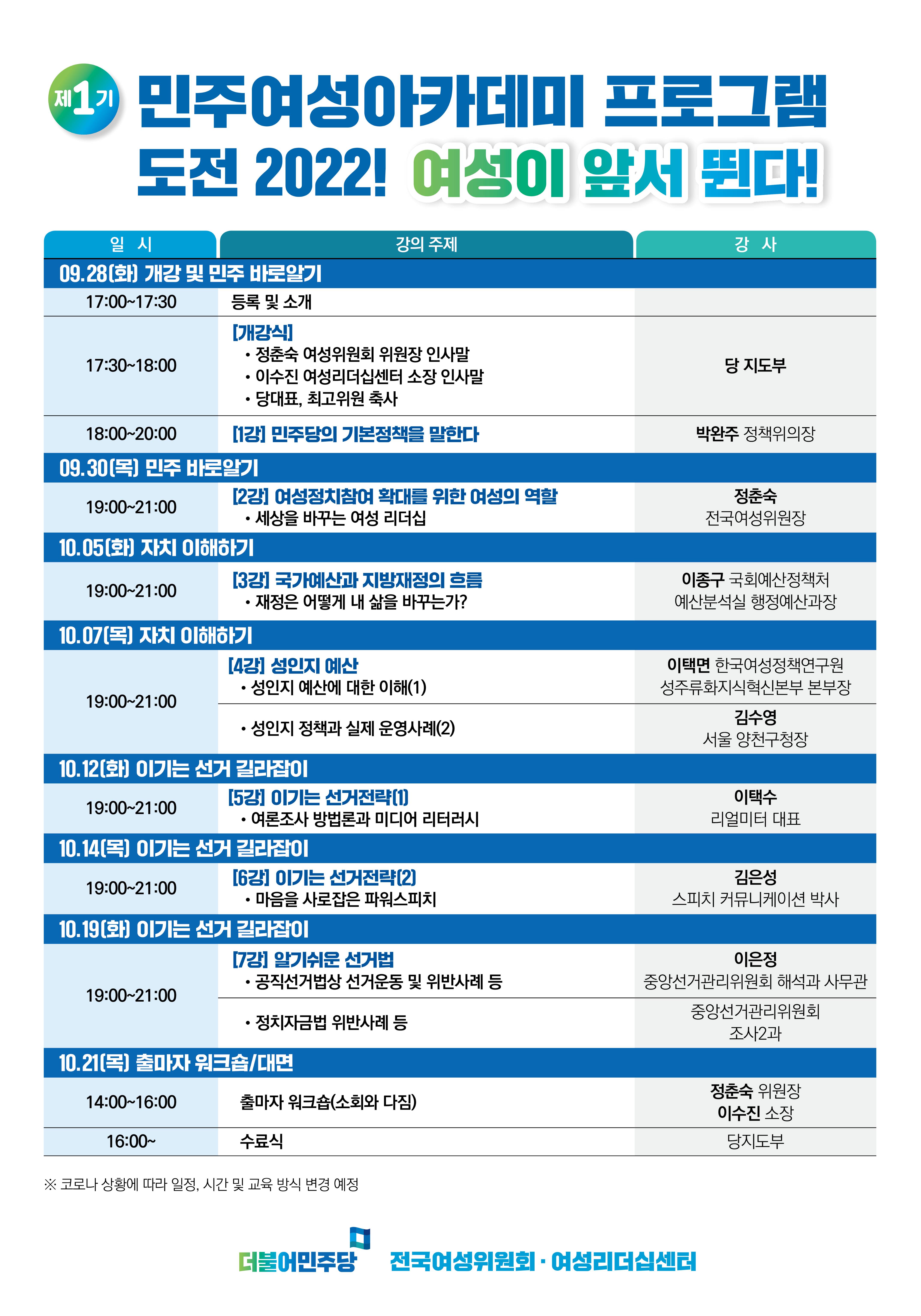 ❍ 주관 및 주최 : 더불어민주당 전국여성위원회, 여성리더십센터