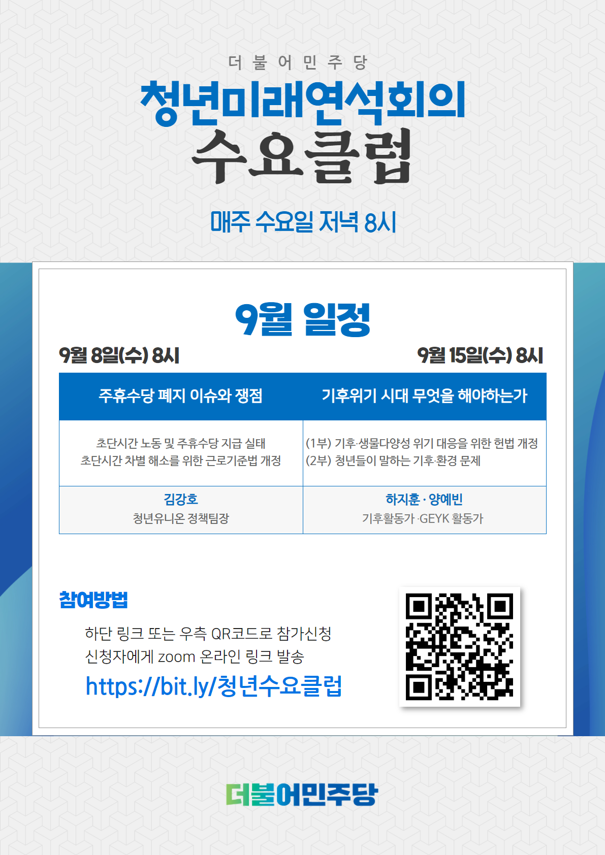 청년미래연석회의 '수요클럽' 참여신청 링크는 하단을 참조해주세요
