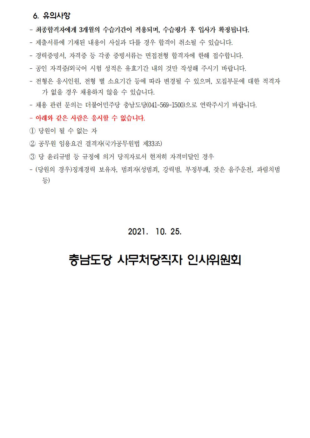 더불어민주당 충남도당 사무직당직자(계약직) 공개채용