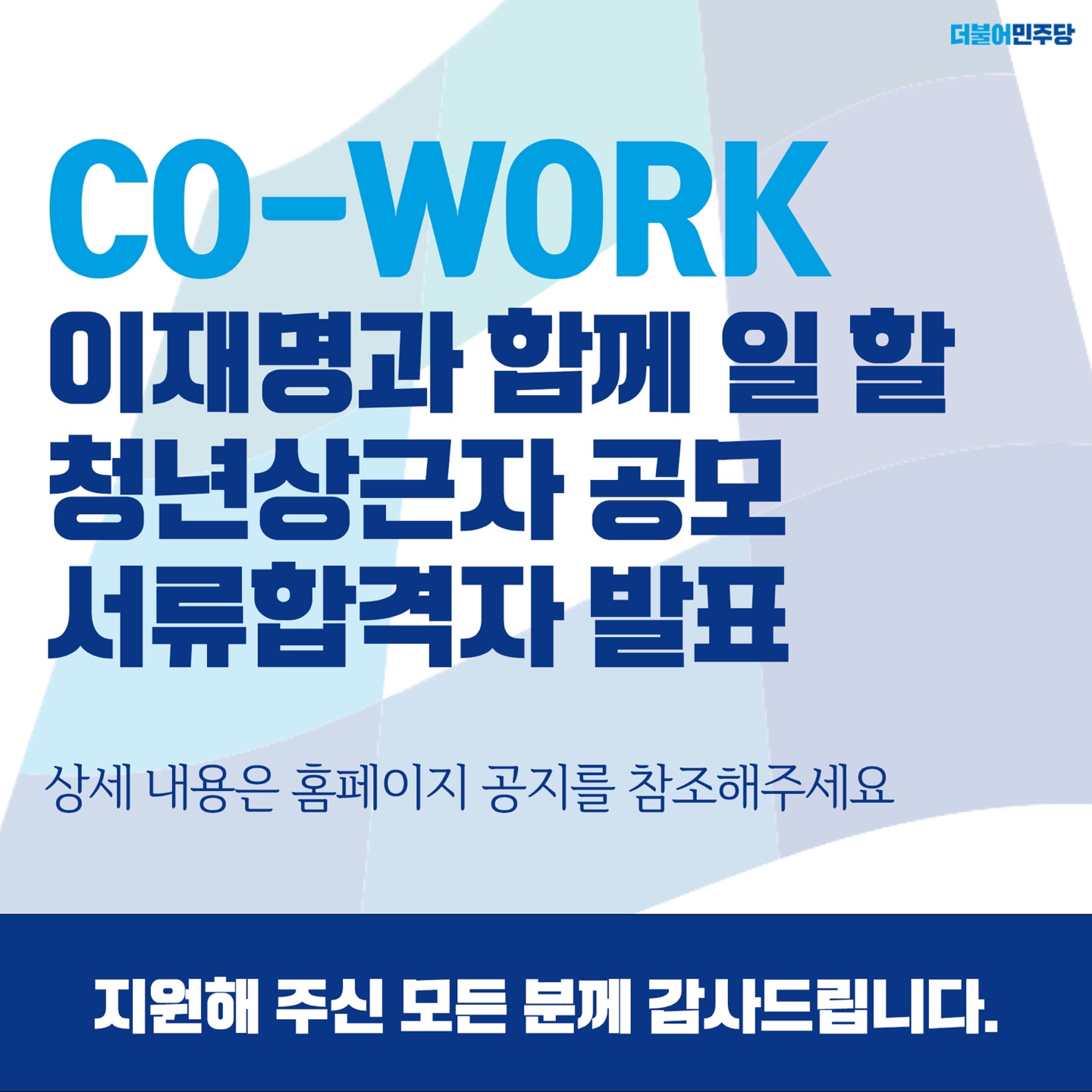 정말 감사합니다. 이재명캠프와 함께 할 ‘2030 콘텐츠 제작팀 공개모집’에 참여해주신 청년 지원자 분들께 감사 인사드립니다.