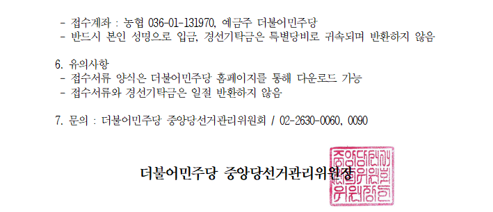 경선기간 중 부정선거 신고서 접수에 따른 경고 조치