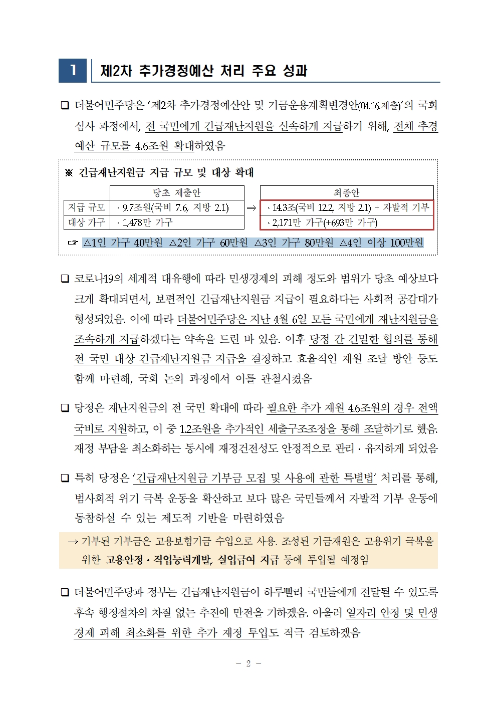 4월 임시국회 추경예산 및 주요법안 처리 성과