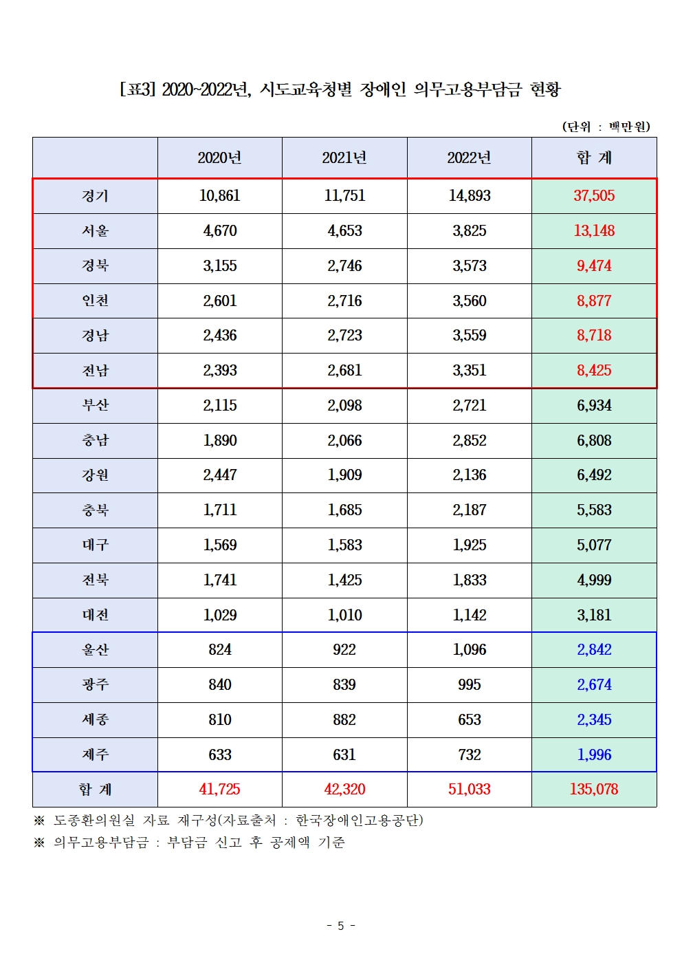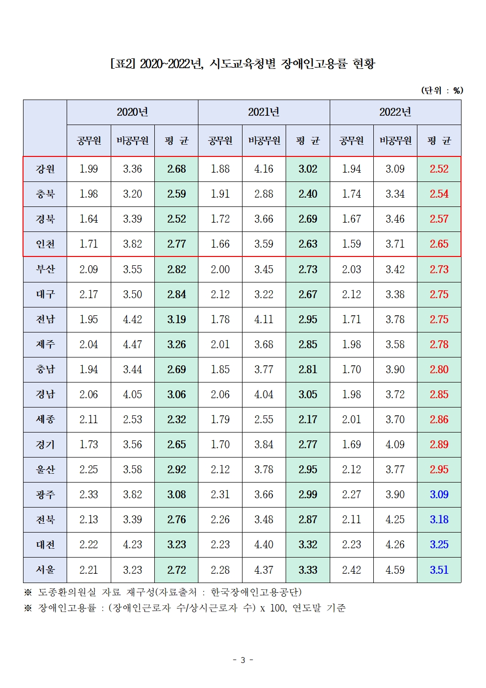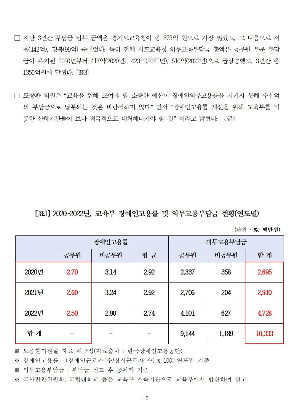 [도종환의원 보도자료] 장애인 고용 외면하고 돈으로 메꾸는 교육부?