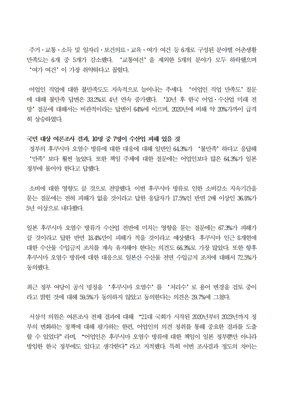 231012_[서삼석 국회의원] 서삼석“ 후쿠시마 오염수 방류 한국정부도 책임 있어 ”.hwp