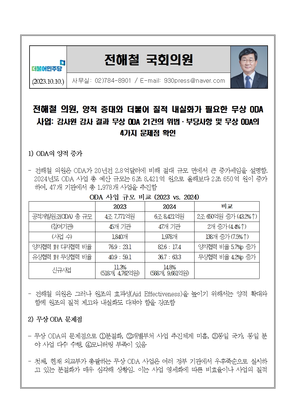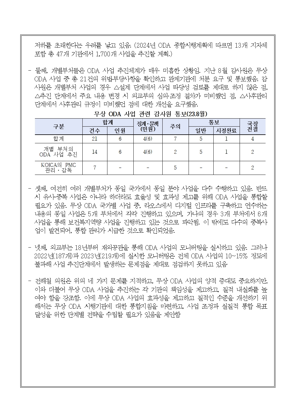 [전해철의원 국정감사 보도자료] 양적 증대와 더불어 질적 내실화가 필요한 무상 ODA 사업