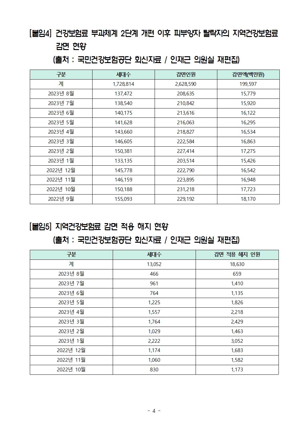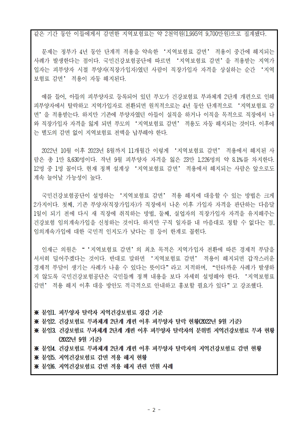 230926_[인재근의원실 보도자료] 직장에서 나왔더니 부모님 지역건강보험료 감면이 사라졌다.hwp