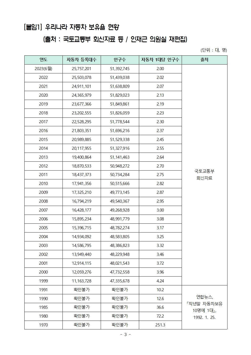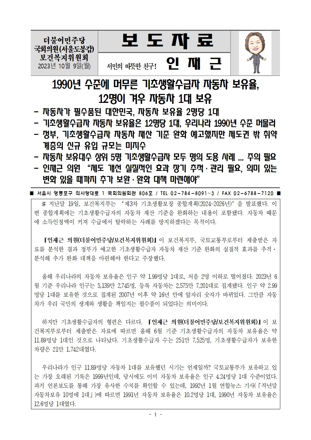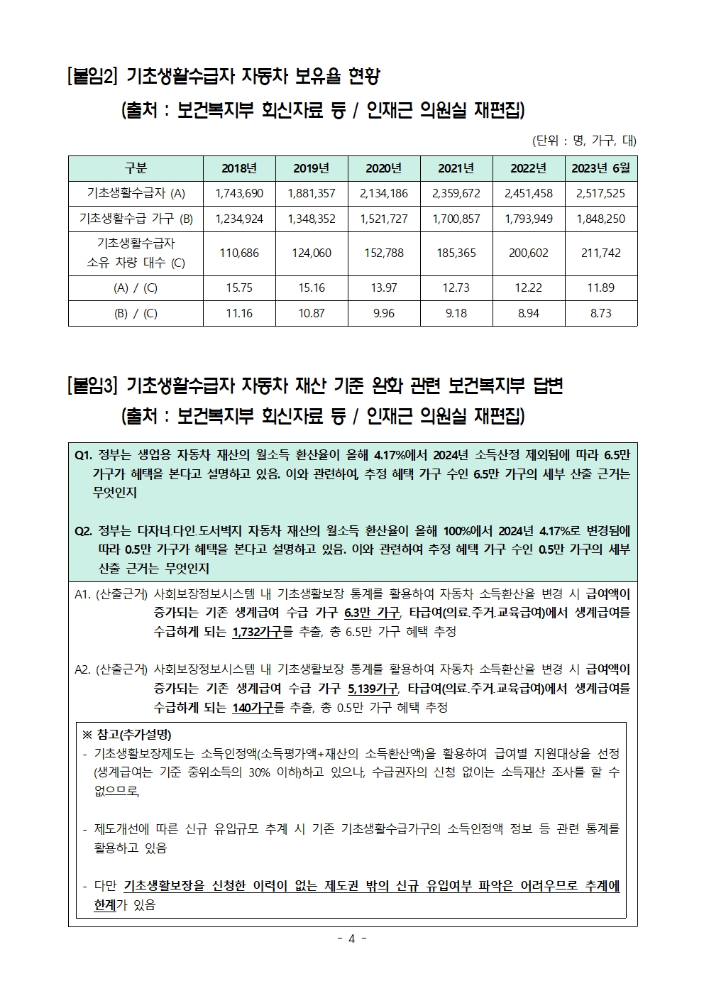 [인재근의원실 보도자료] 1990년 수준에 머무른 기초생활수급자 자동차 보유율, 12명이 겨우 자동차 1대 보유