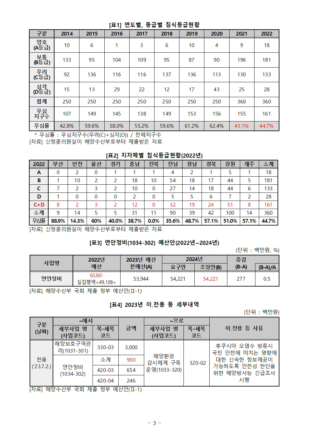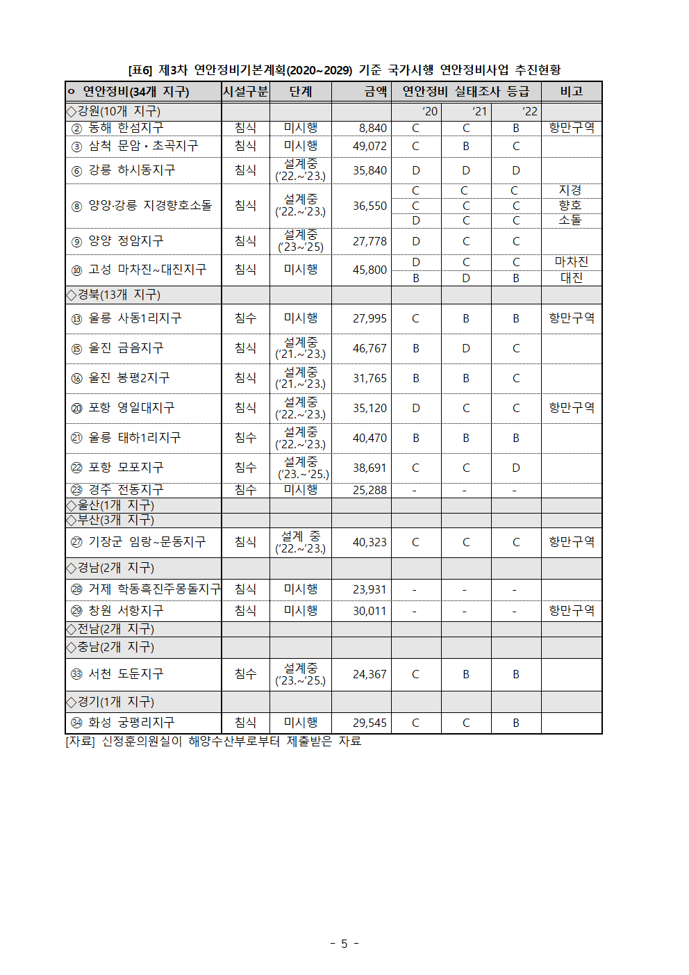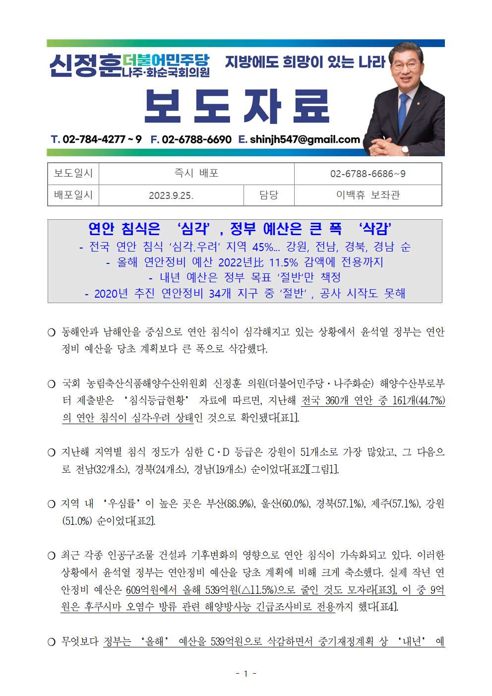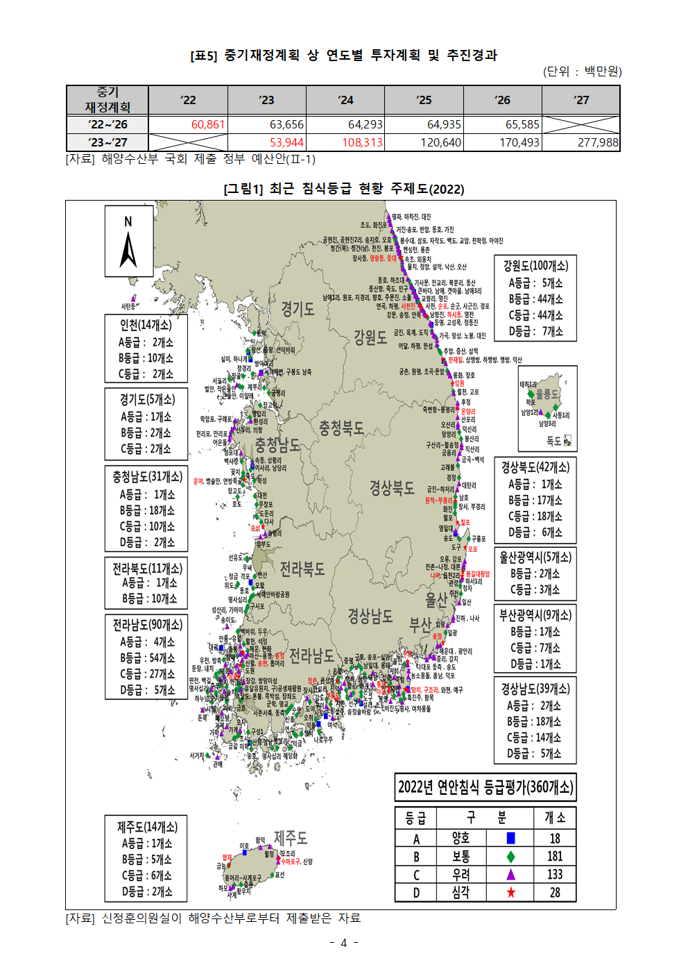 [신정훈 의원 보도자료] 연안 침식은 ‘심각’, 정부 예산은 큰 폭 ‘삭감