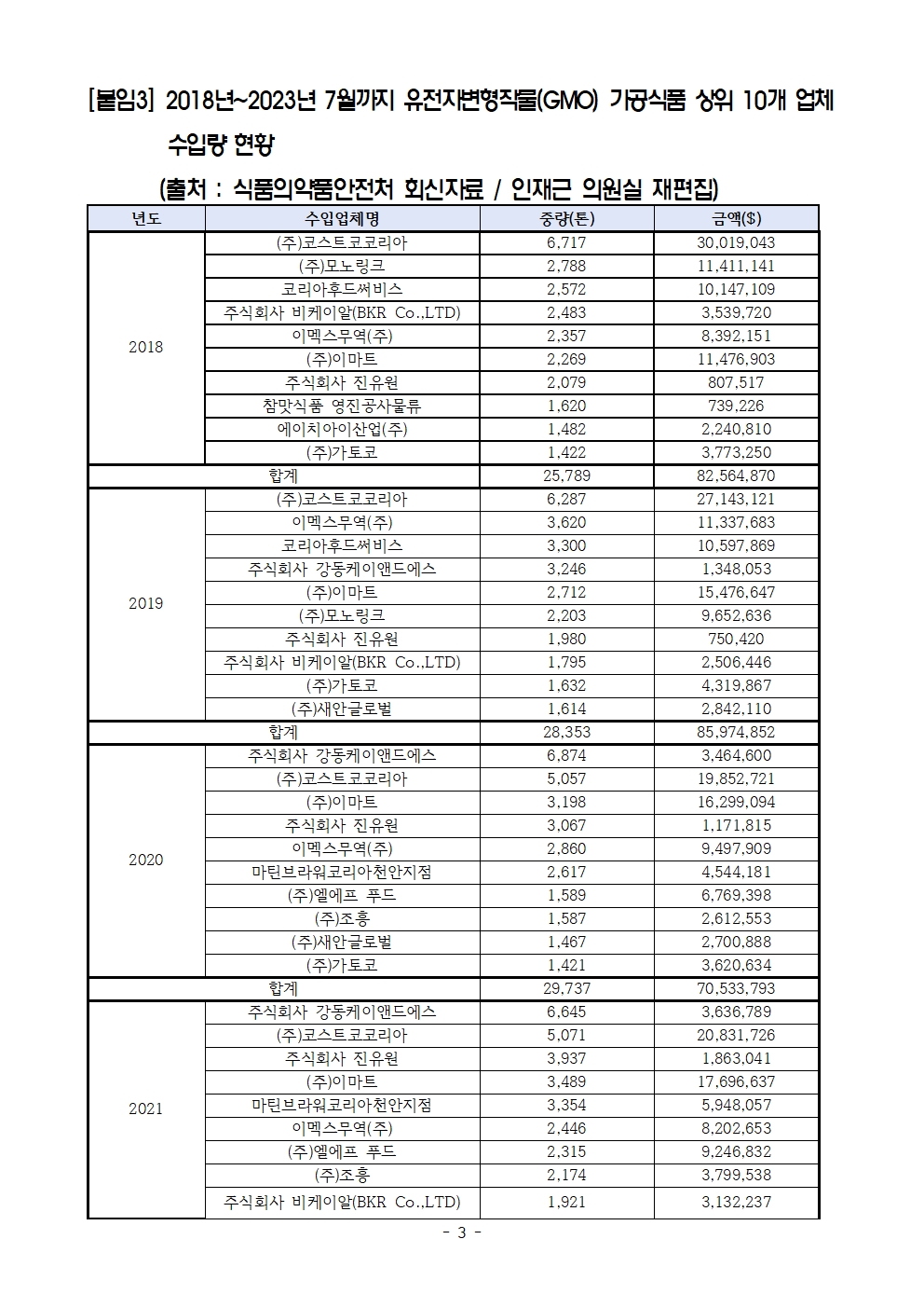 [인재근의원실 보도자료] 대형마트부터 프렌차이즈까지... 우리 일상에 스며든 GMO 가공식품
