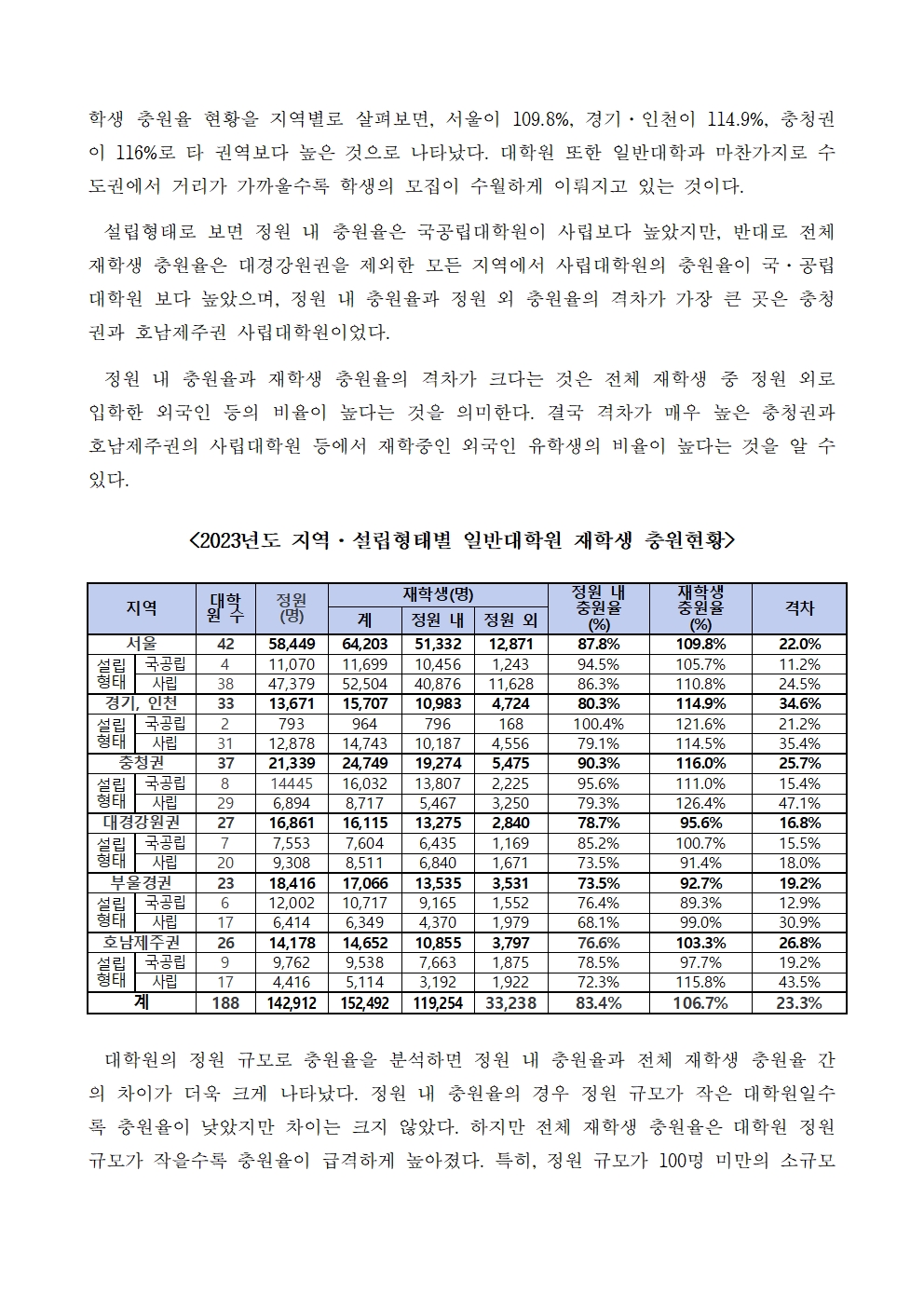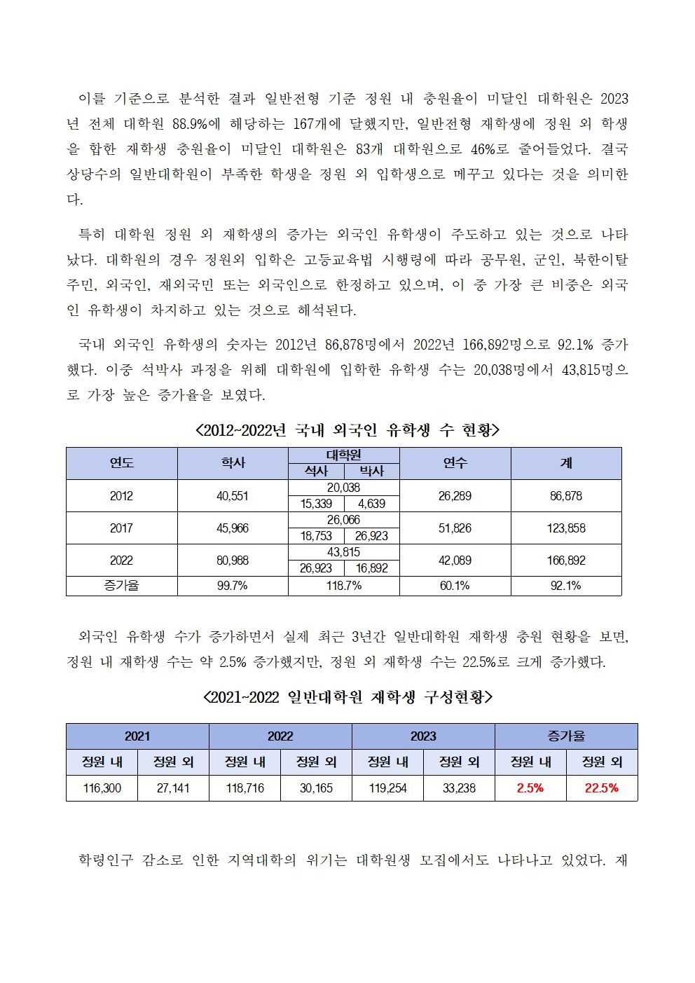 16. 231011_국감_서동용_대학원_정원_매년_증가하지만_전체_대학원_중_절반이_정원_충원율_미달.hwp
