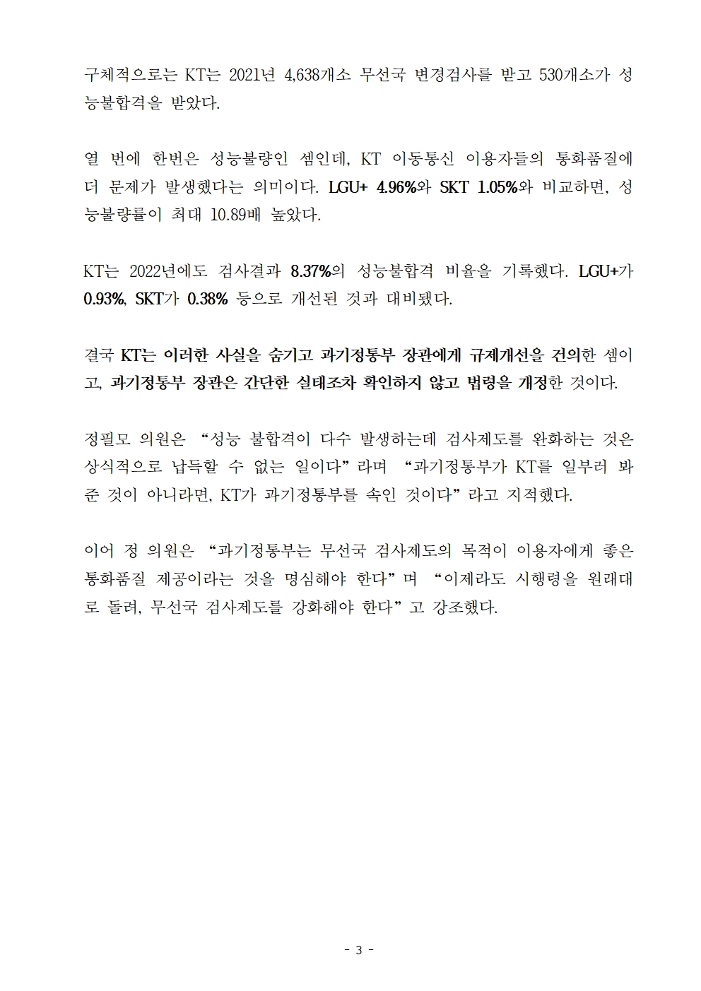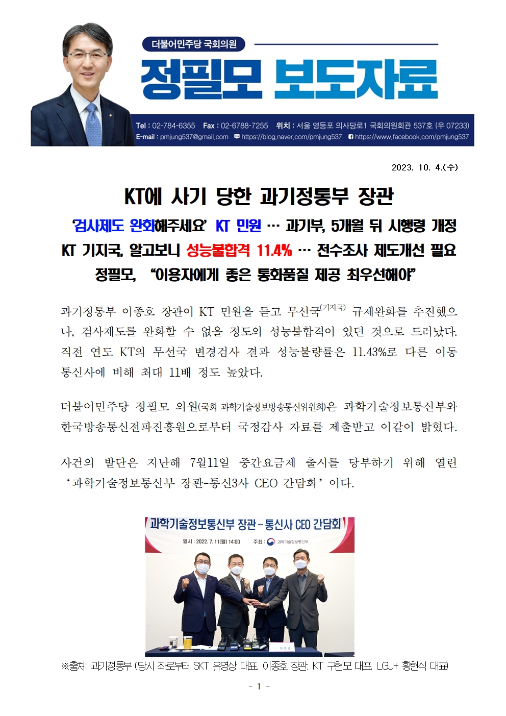 [정필모 의원 보도자료] KT에 사기 당한 과기정통부 장관