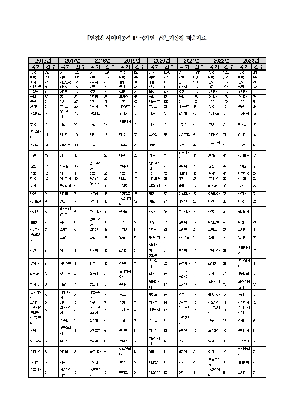 보도자료_기상청타겟_사이버공격_증가_여전해_국정원_정보보안평가도_최하위.hwp