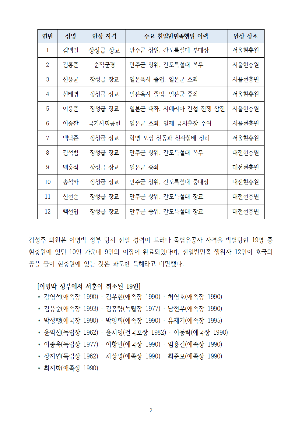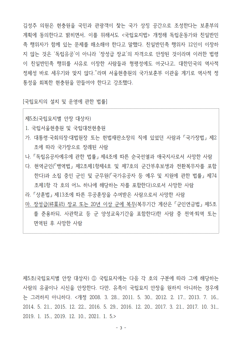 [김성주의원 보도자료] 대한민국 역사적 정통성 회복한 현충원으로 거듭나야
