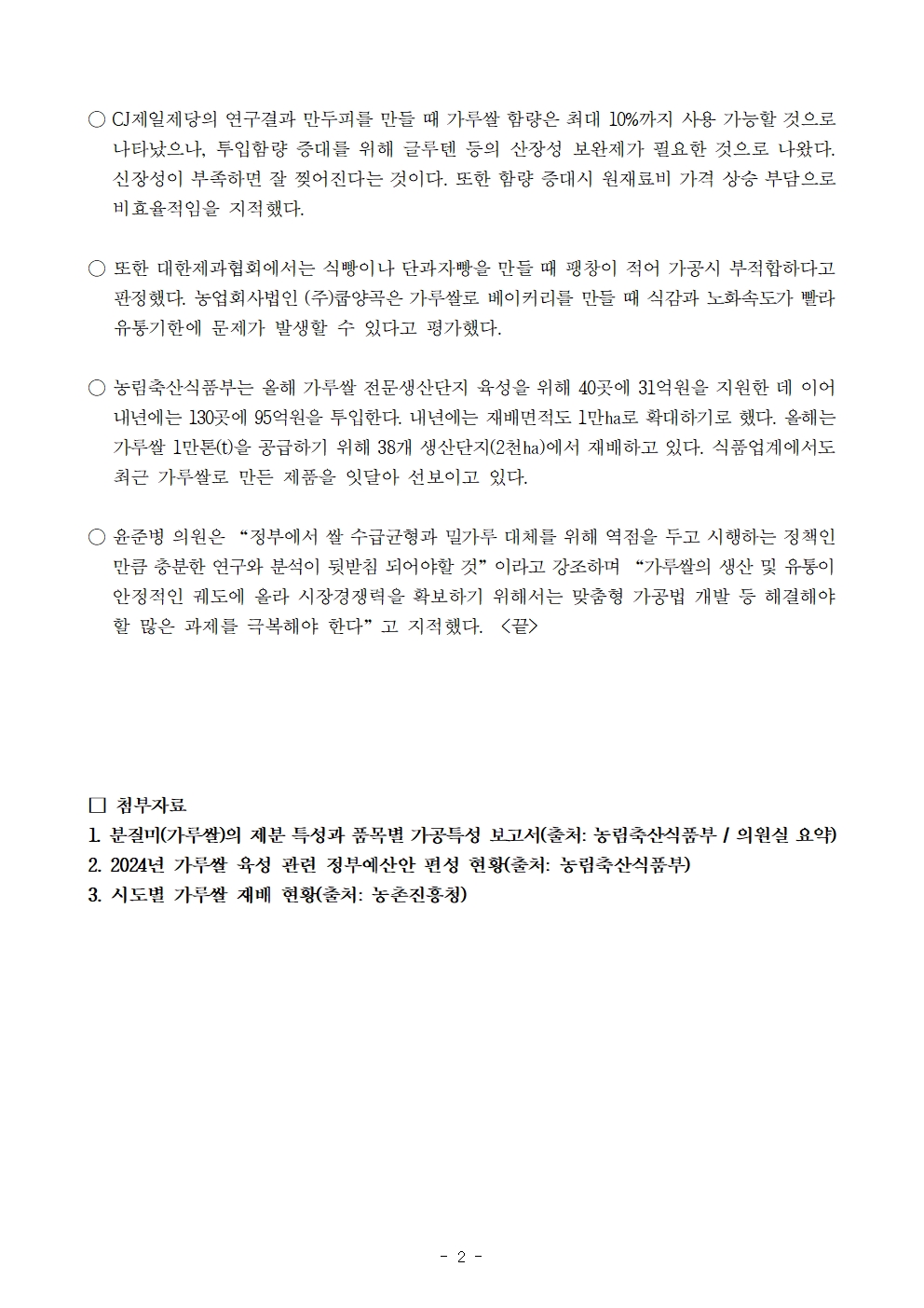[윤준병 의원 국정감사 보도자료] 윤준병 의원, “가루쌀이 쌀 수급균형의 해결책 밀가루 대체 부적합!”