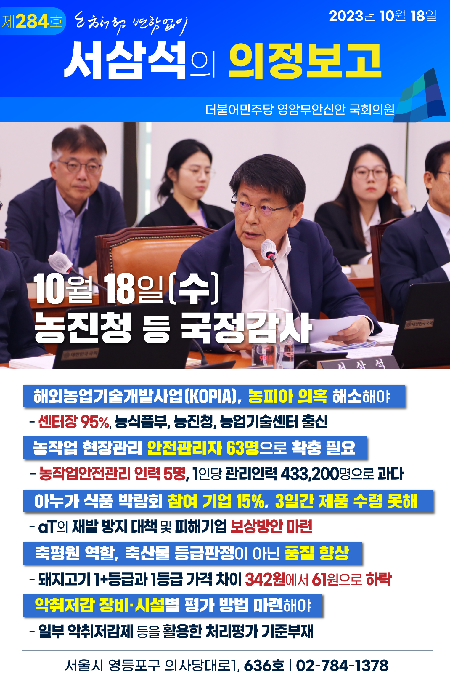 [서삼석 국회의원] 231018_서삼석 “축평원 존재 이유는 등급 판정이 아닌 품질 향상”