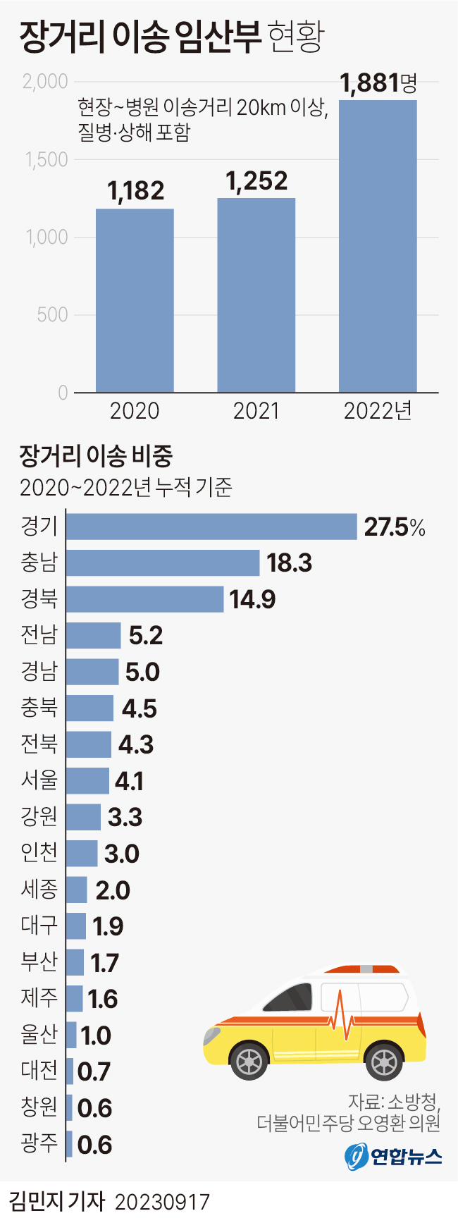 [오영환 언론보도] (연합뉴스) "병원 멀어 구급차 출산"…연평균 1400명이 20㎞ 넘게 이송