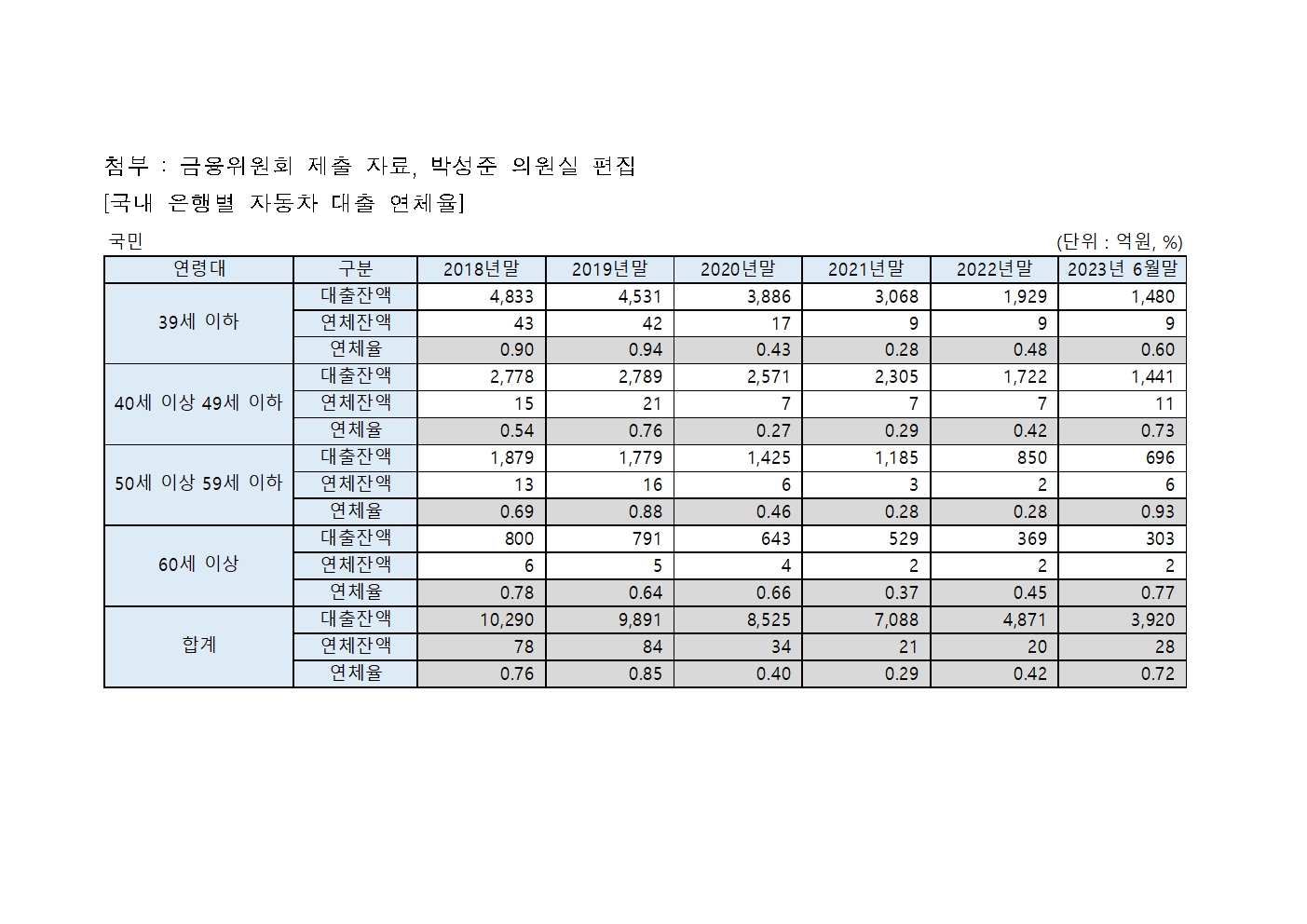 [국회의원 박성준_보도자료]4-50대 자동차 대출 연체율 2년 사이 2배 이상 증가,경제 ‘허리’ 위기 신호