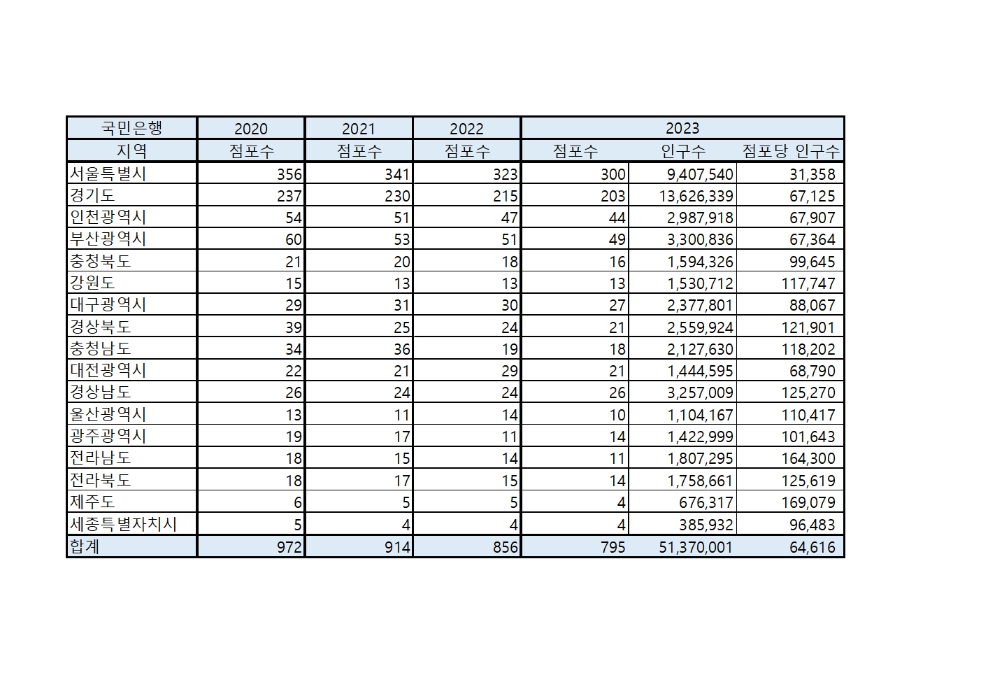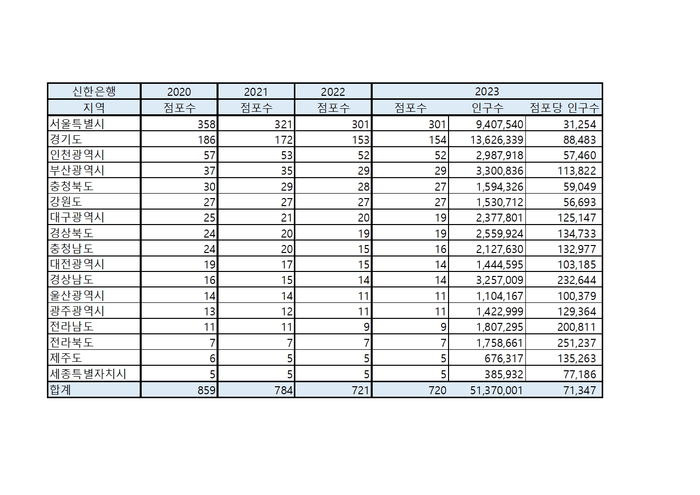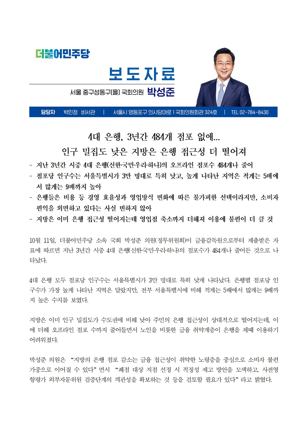 [국회의원 박성준_보도자료]4대 은행, 3년간 484개 점포 없애...인구 밀집도 낮은 지방은 은행 접근성 더 떨어져