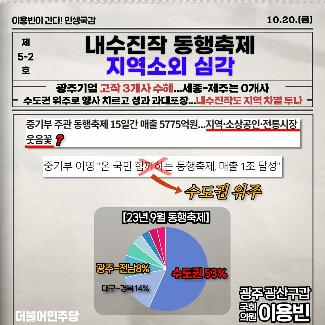 [이용빈 의원 | 국감 카드뉴스] 내수진작 동행축제 지역소외 심각