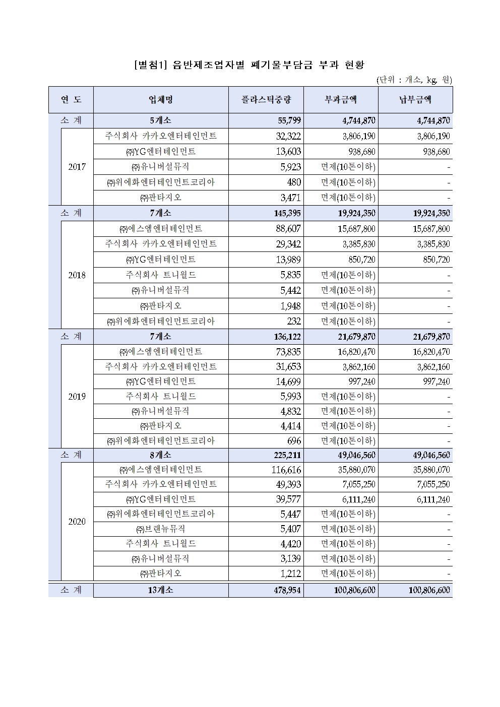 [우원식 의원 보도자료] K-POP 기획사 앨범 폐기물 발생량, 6년 사이 14배 이상 증가