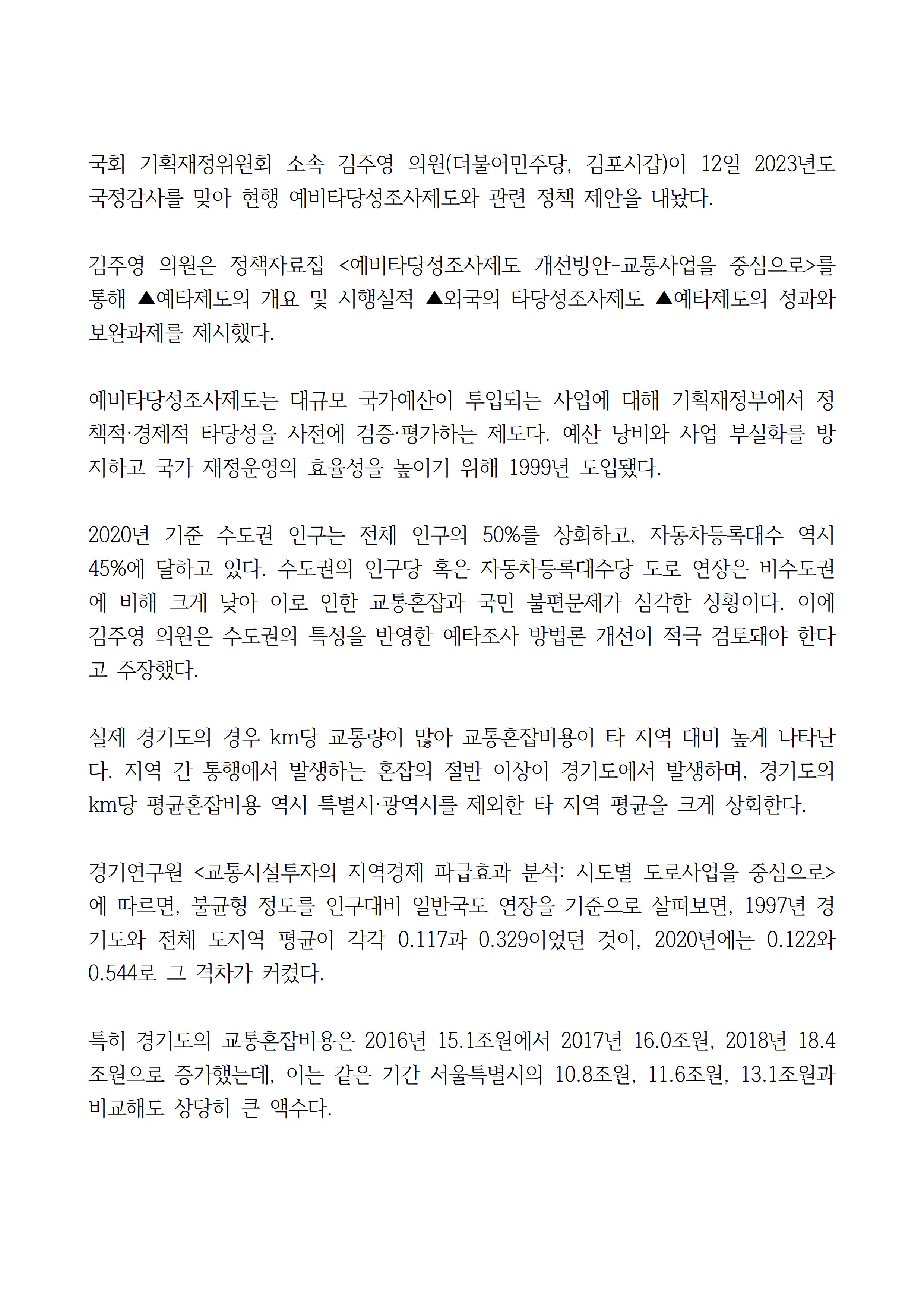 231013_국감보도자료_김주영의원_예타조사의 현주소와 개선방안 ③_국감 정책자료집.hwp