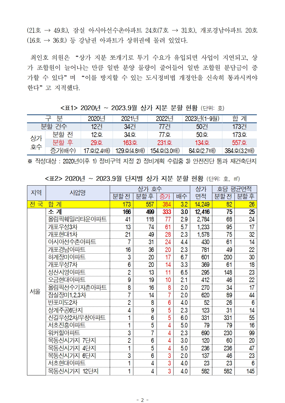 2023국감_최인호_최근_3년간_재건축_입주권_노린_상가쪼개기_6배.hwp